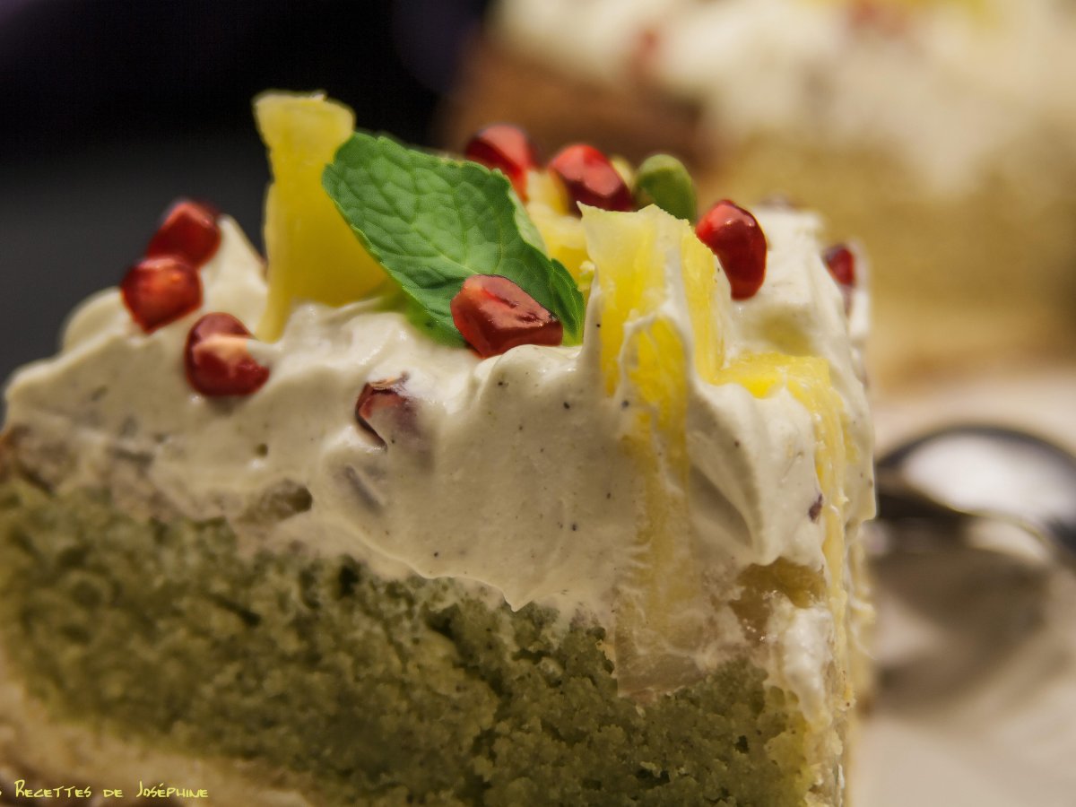 C'est un dessert entre l'entremet et la tarte parfumé à la pistache.