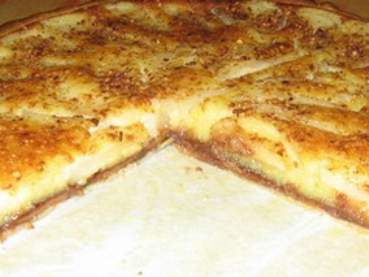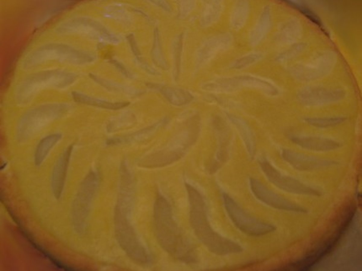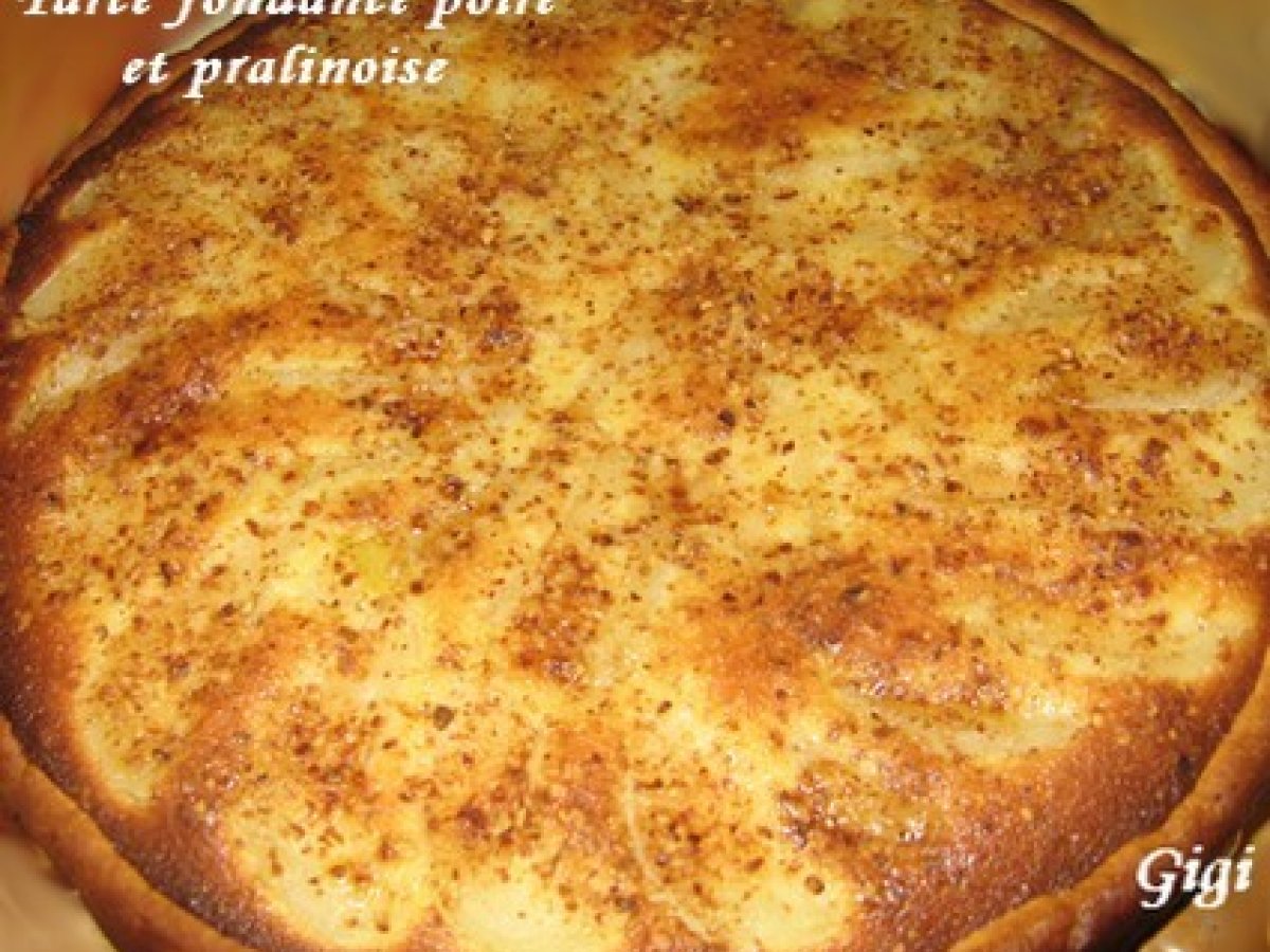 Une tarte aux poires pralinoise et pralin, délicieuse. A déguster encore un peu chaude miamm !
