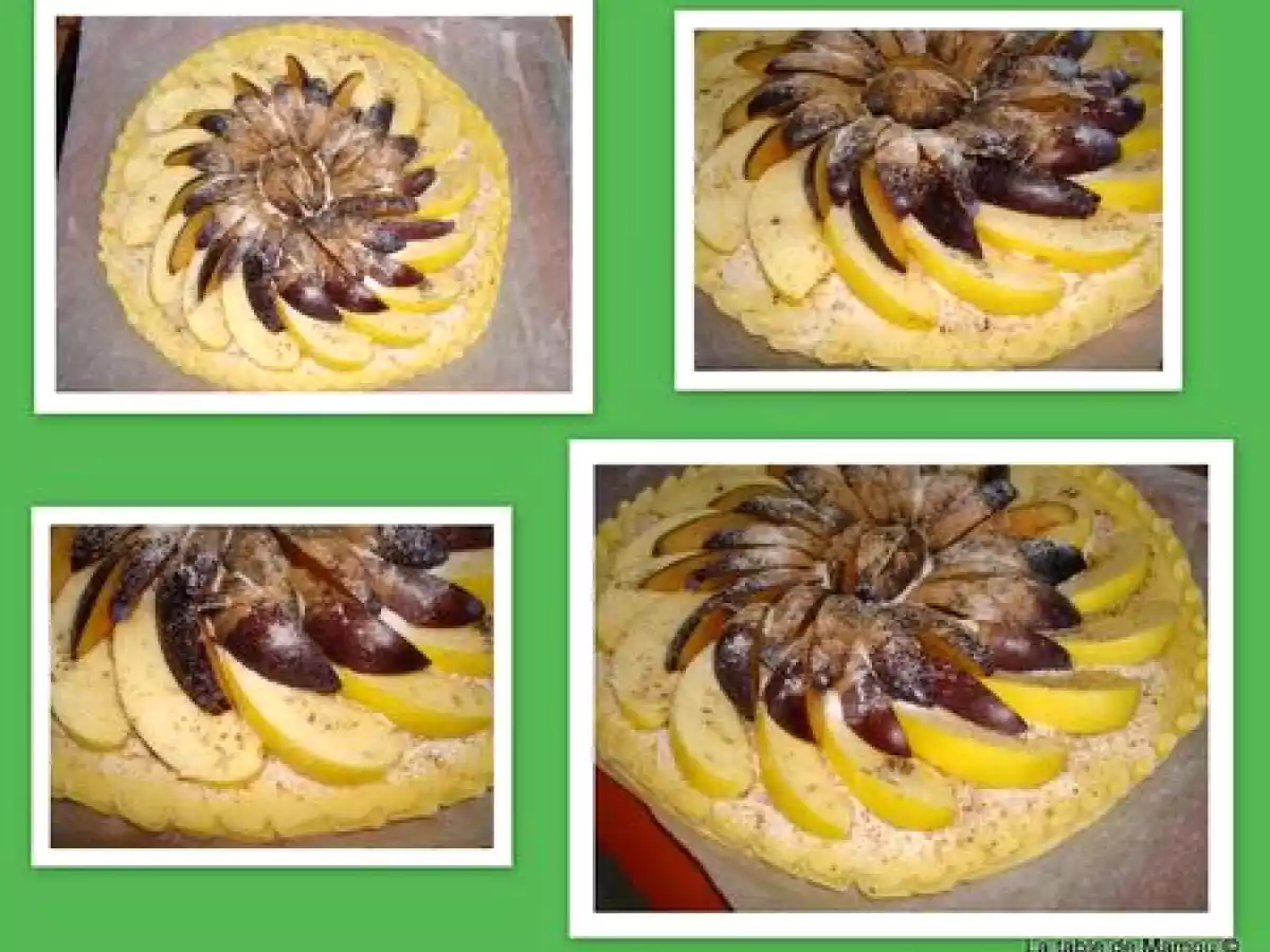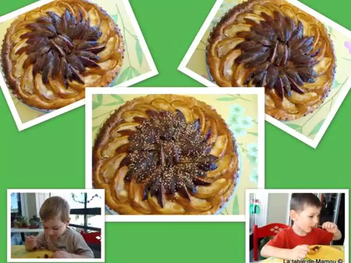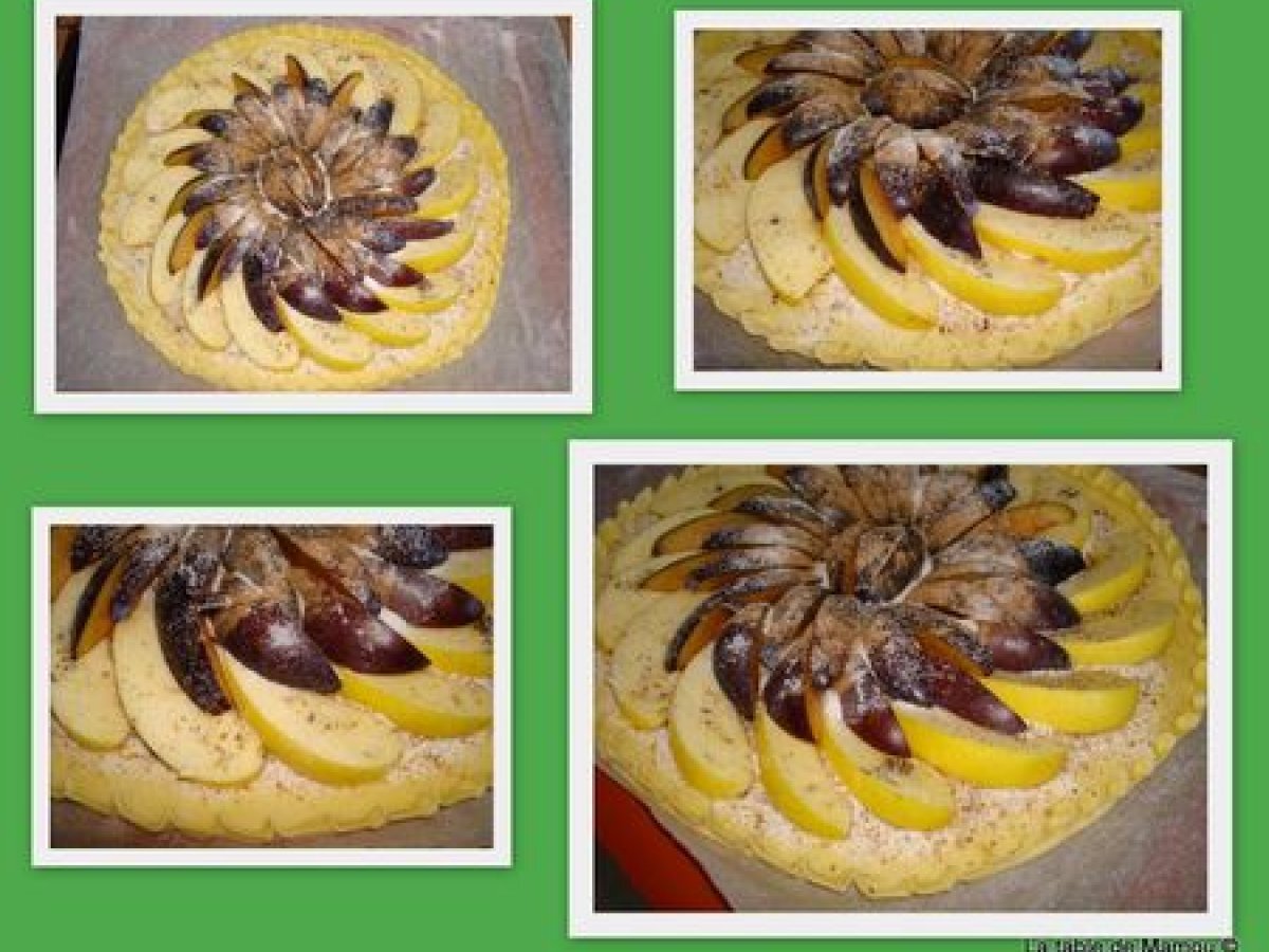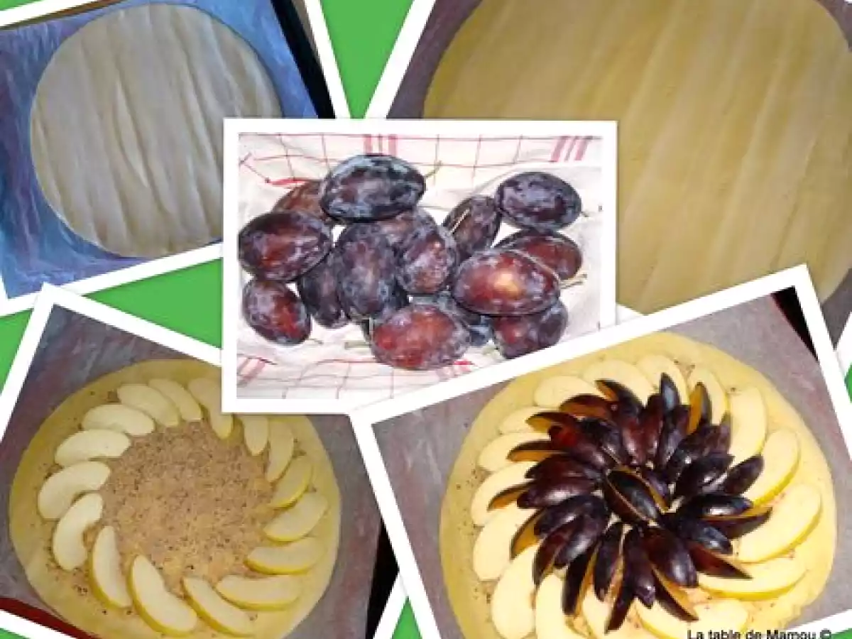 Tarte pomme et quetsches votez maintenant PrécédentSuivant Dessertfacile40 min Envoyer cette recette à un ami Imprimer cette page Poser une question à l'auteur Publier votre photo de cette recette Ingrédients 4 1 pâte feuilletée 3 cuillère à soupe de poudre de noisettes 1 pomme golden 6 très grosses quetsches 1 cuillère à thé de vanille en poudre 3 cuillères à café de sucre citron 1 cuillère à thé de cannelle 1 sachet de sucre vanillé Pour le nappage : 1 pomme golden 4 très grosses quetsches 1 c à soupe de sucre citron 1 sachet spécial nappage sucre cristallisé or, pour la décoration