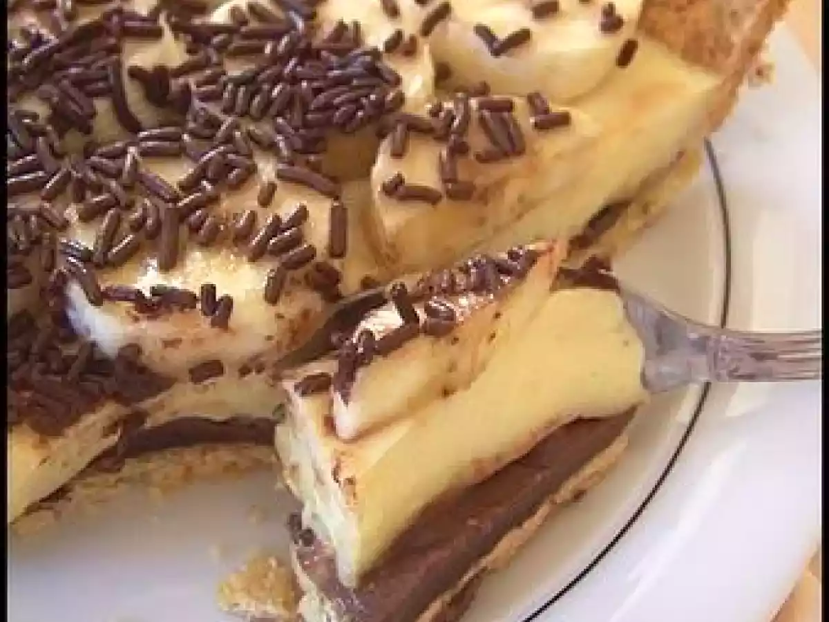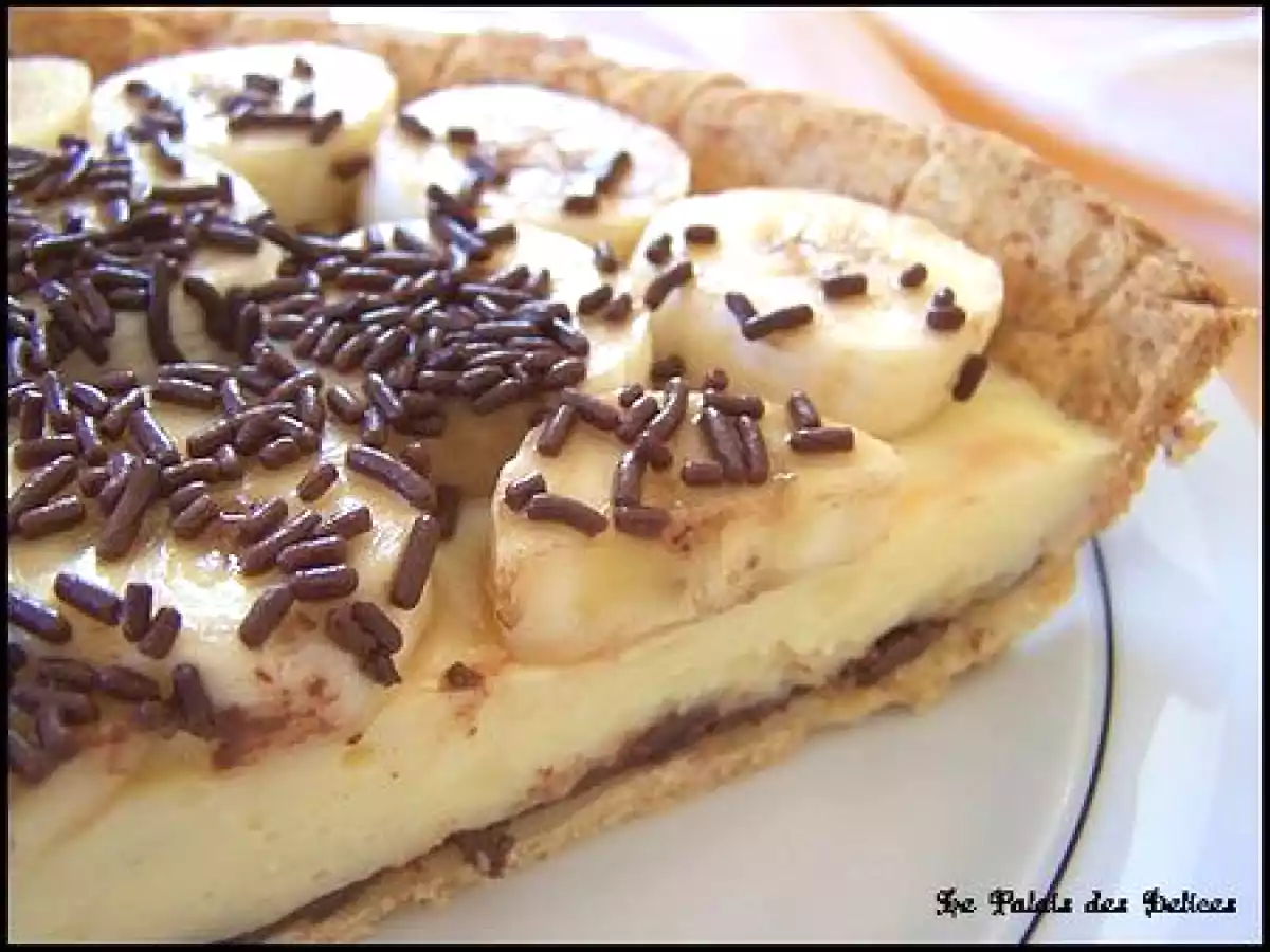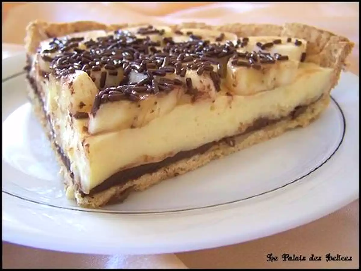Le contraste avec cette pâte friable et délicate, la couche de chocolat corsé, le pudding frais à la vanille et les rondelles de bananes qui ornent le dessus de la tarte est un véritable délice ! C'est une tarte riche et généreuse qui s'apprécie en part raisonnable, tel quel, servie bien fraîche simplement avec un bon.