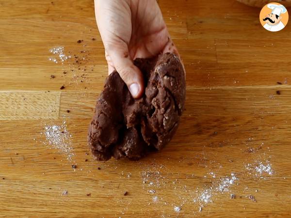 Former une boule, l'aplatir puis la filmer pour la mettre au frais pendant 1 heure.