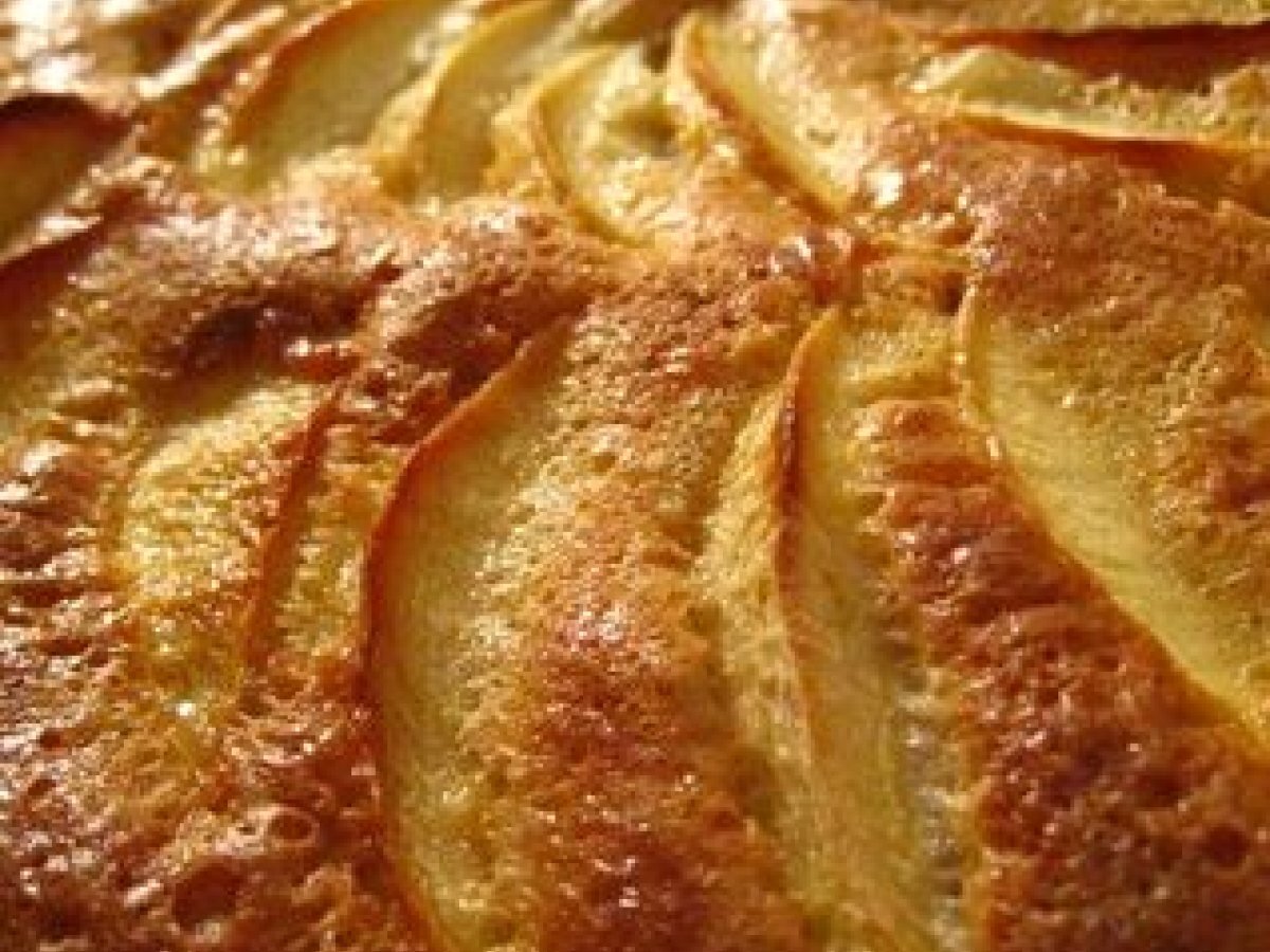 Une tarte avec une légère couche de sorte de flan aux pommes, un pur délice.