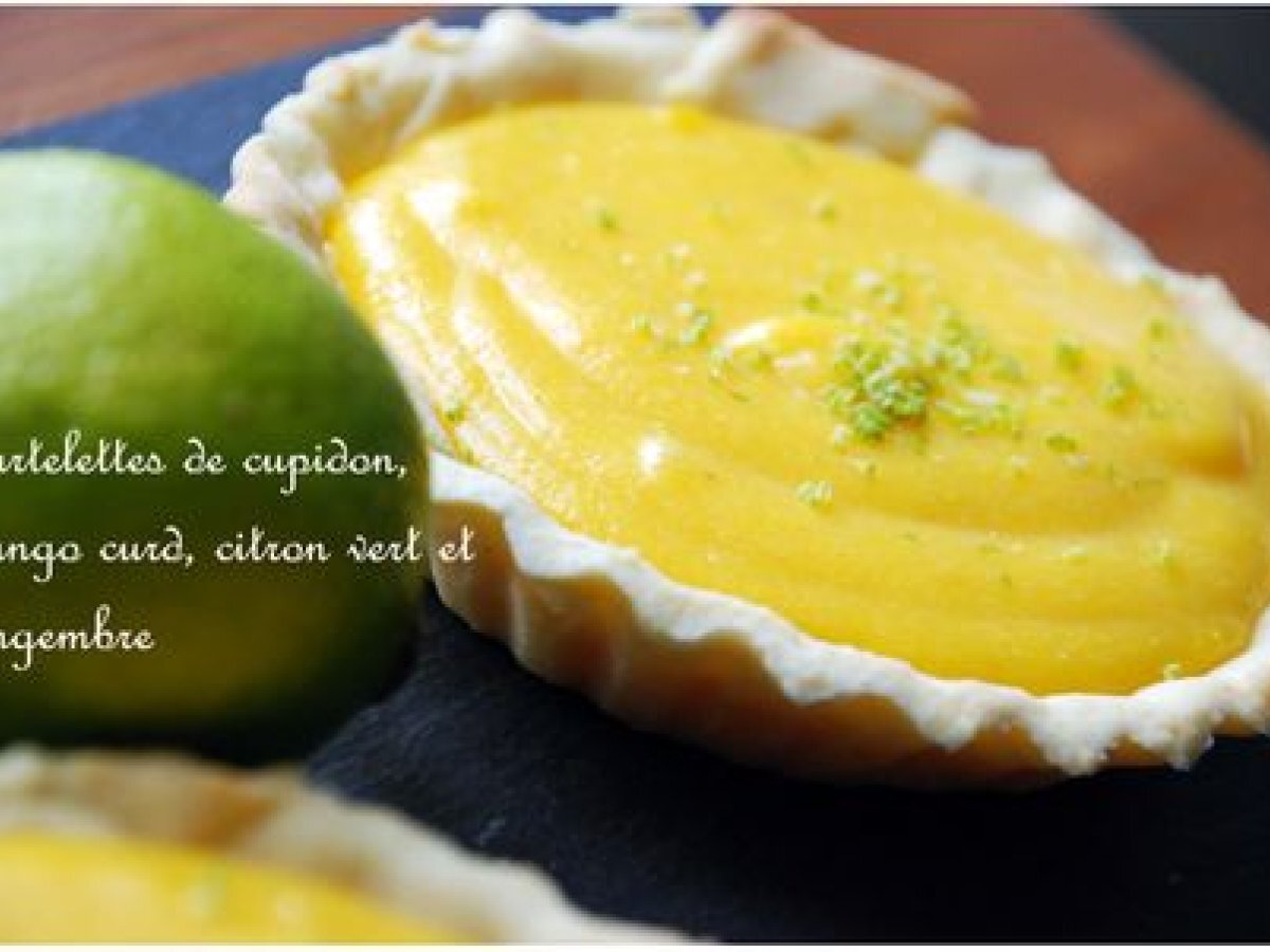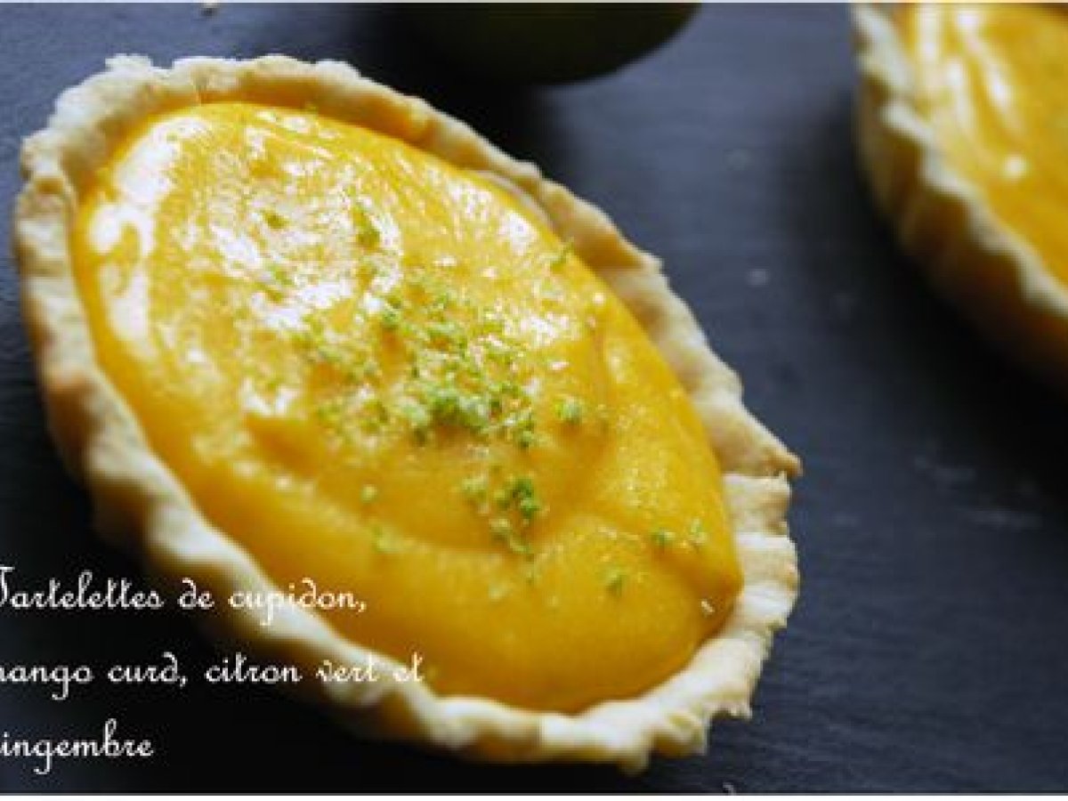 Tartelettes de cupidon : mango curd, citron vert et gingembre PrécédentSuivant Dessertfacile22 min Envoyer cette recette à un ami Imprimer cette page Poser une question à l'auteur Publier votre photo de cette recette Ingrédients 6 Pâte sablée : 110 g de farine 40 g de poudre d'amande 40 g de sucre glace 50 g de beurre 1 petit oeuf Mango curd au citron vert et gingembre : 1 belle mangue mûre à point 1 citron vert 1 cm de racine de gingembre 2 oeufs + 1 jaune 30 g de sucre en poudre 50 g de beurre
