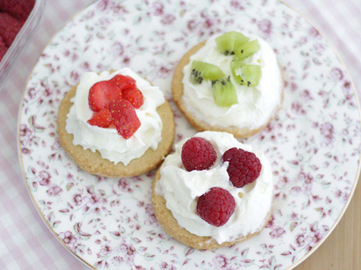 Cela peut être une idée quand on reçoit à l'improviste mais encore faut il avoir de la chantilly en bombe sous la main et des palets bretons. ce n'est pas une recette mais une idée tout simplement