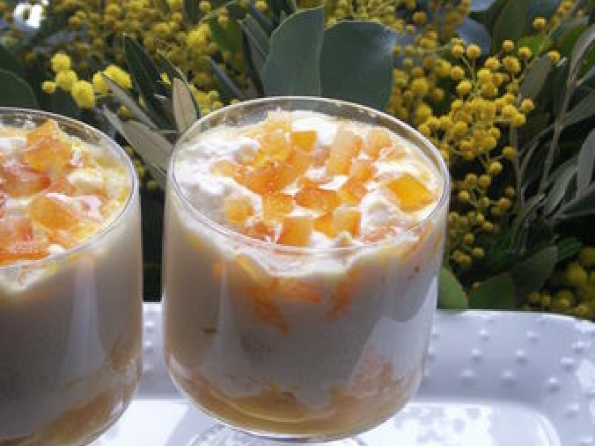 Tiramisu à l'orange et grand-marnier sur fond de mimosa...... votez maintenant PrécédentSuivant Dessertfacile25 min348 Kcal Envoyer cette recette à un ami Imprimer cette page Poser une question à l'auteur Publier votre photo de cette recette Ingrédients 5 250 g de mascarpone 3 oeufs 3 oranges bio 180 g de sucre en poudre fin 1/2 cuillère à café de Maïzena 10 boudoirs 1 orange confite Grand Marnier Coût estimé: 6.84Euros€ (1.37€/part)