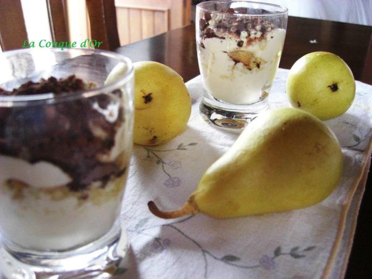 Recette de tiramisu de saison puisque j'ai utilisé des poires jaunes (en italien la variété est "Coscia") et des amandes.