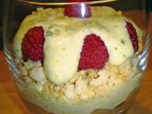 Tiramisu rhubarbe-framboises-pistaches et sa brisure de macarons