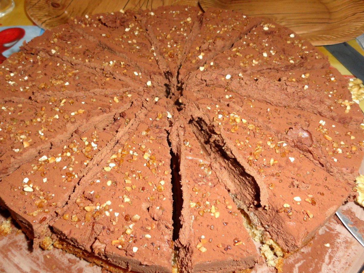 Ce délicieux gâteau s'appelle Trianon ou royal.. Moi je l'appelle Trianon Royal !! Il mérite bien ce somptueux nom !! On le trouve facilement en grande surface... Il est souvent rectangulaire, toujours très choco et craquant-croquant avec son biscuit et son praliné..... Pour une première réalisation, j'apréhendais un peu.. et puis non, ce n'est vraiment pas si compliqué !! Dac il y a 3 couches, donc 3 étapes.. mais en 1h30 (ou 2) c'est fait, la vaisselle est rangée et le gâteau