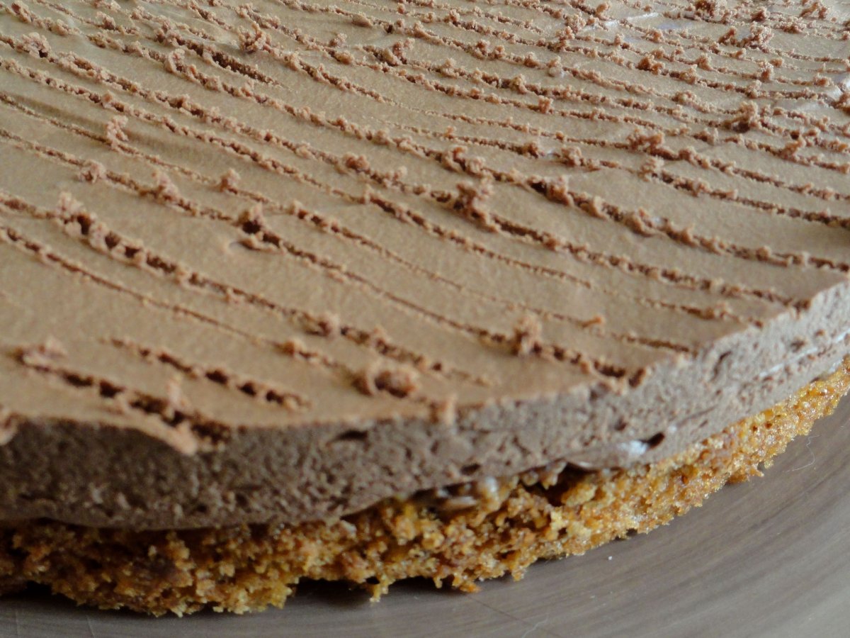 Étalez cette savoureuse pâte sur le biscuit avec le dos d'une cuillère - Et on termine ( ouf !) avec cette sublime variante de mousse au chocolat !!! Depuis que je l'ai découvert je sais que je ne ferai plus jamais de mousse avec blancs d'oeufs ( çà rejette de l'eau et c'est plus hard !!)