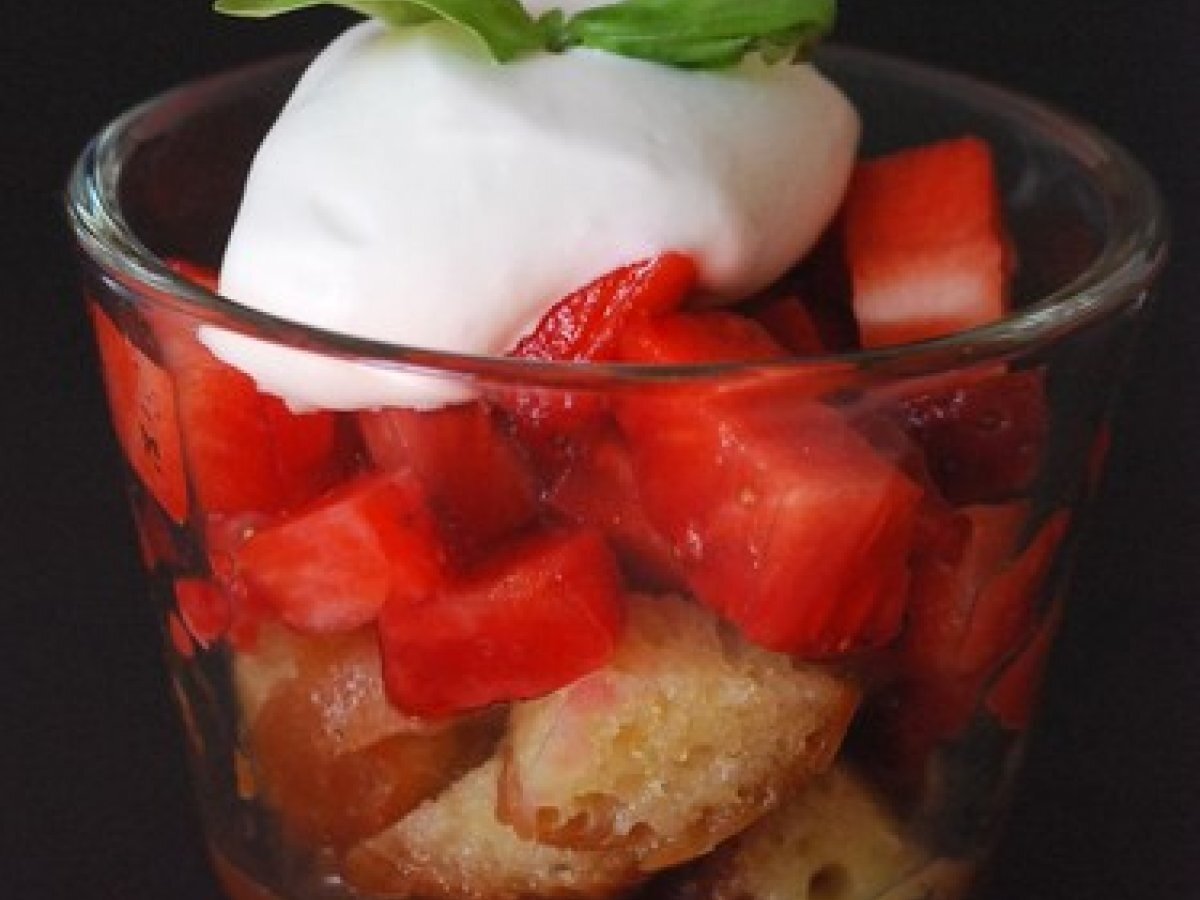 Verrine : baba au limoncello, fraises et chantilly à la bergamote