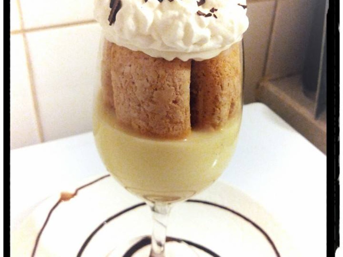 Verrine de biscuit à la cuillère et sa crème anglaise et framboises