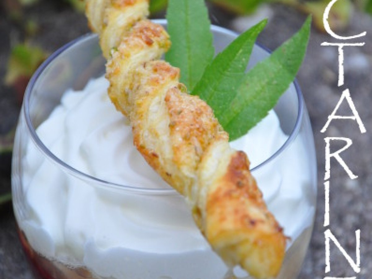 Verrine de nectarines à la chantilly de verveine et sacristains amandes-pistaches Dessertmoyen10 min472 Kcal Envoyer cette recette à un ami Imprimer cette page Poser une question à l'auteur Publier votre photo de cette recette Ingrédients 4 5 nectarines blanches 1 cuillère à soupe de miel liquide d'acacia 300 g de framboises 30 g de sucre 2 cuillères à soupe de jus de citron 1/2 cuillère à café d'agar-agar 300 g de crème fleurette 2 cuillères à soupe de sucre glace 2 branches de verveine Coût estimé: 12.27Euros€ (3.07€/part)