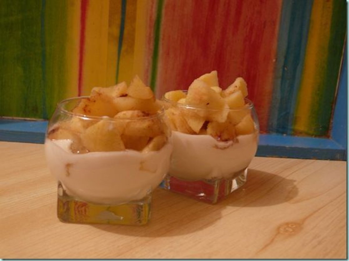 Verrine de pommes à la cannelle sur son lit de fromage blanc