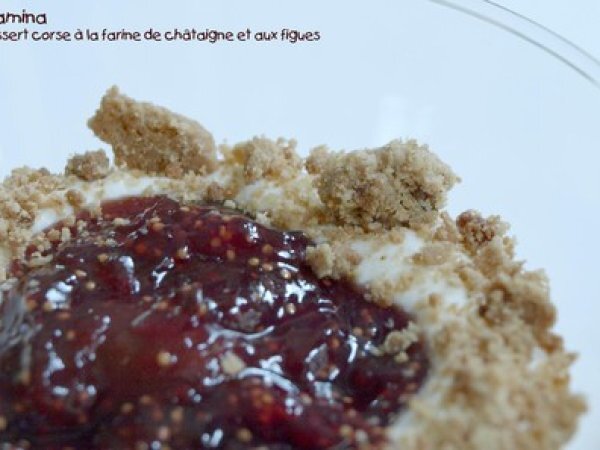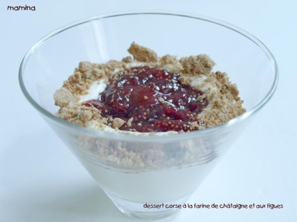 Verrine dessert : crémeux de brousse aux figues, crumble à la farine de châtaignes
