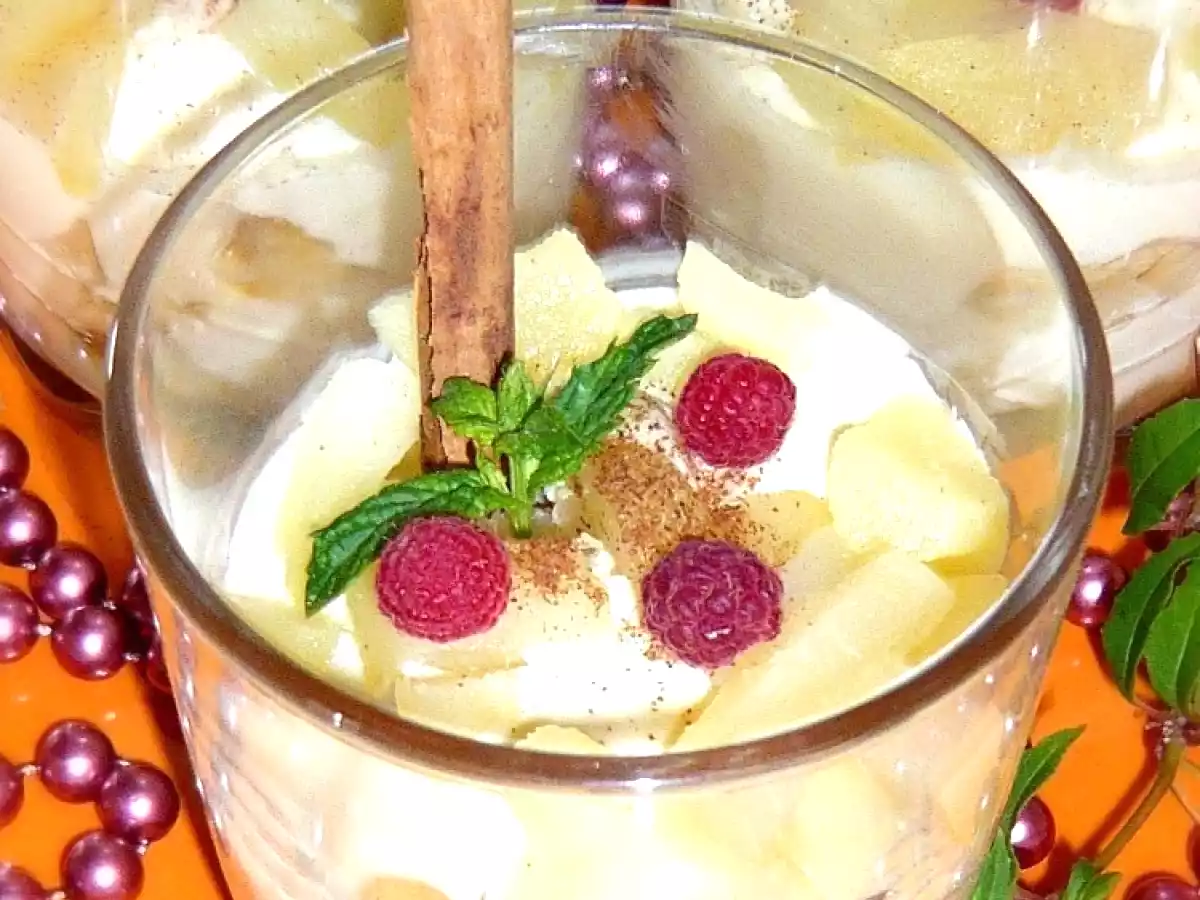 Verrines aux poires et mousse de mascarpone Dessertfacile10 min Envoyer cette recette à un ami Imprimer cette page Poser une question à l'auteur Publier votre photo de cette recette Ingrédients 6 250gr de mascarpone 2 ufs entiers 80gr de sucre 1 petite boite de poires au sirop (ou fruits frais si c'est la saison en gardant bien le jus qui en coulera quand vous les couperez en morceaux) 6 boudoirs 1 cuillère à café rase de cannelle en poudre quelques framboises et feuilles de menthe si vous en avez