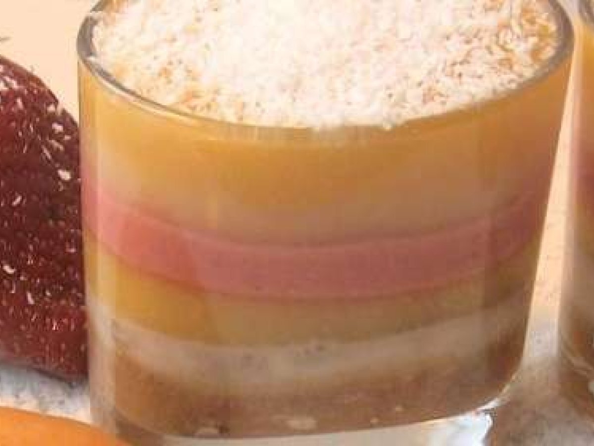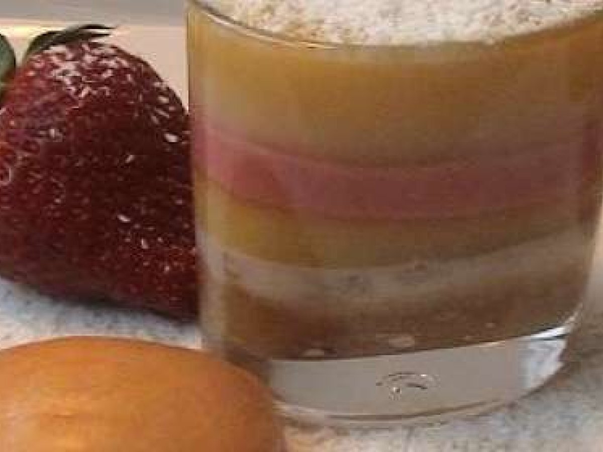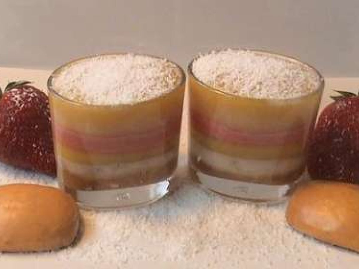Verrines mangues bananes ananas fraises sur lit de chamonix à l' votez maintenant PrécédentSuivant DessertDifficile5 h 20 m Envoyer cette recette à un ami Imprimer cette page Poser une question à l'auteur Publier votre photo de cette recette Ingrédients 2 ingrédient pour le lit de chamonix 2 biscuits chamonix à l'orange 1 cuillère à soupe de jus de citron ingrédients pour la mousse de bananes 1 banane 2 cuillères à soupe de crème liquide 1/4 de feuille de gelatine ingrédients pour la mousse mangue- coco 200 g de mangues au sirop le jus d'un demi citron 1/2 feuille de gelatine 1 cuillère à café de noix de coco rapé ingrédients pour la mousse fraises 100 g de fraises fraiches 1 cuillère à soupe de sucre 1 cuillère à soupe de crème liquide 1/2 feuille de gélatine ingrédients pour la mousse ananas 200g d'ananas au sirop 2 cuillères à soupe de jus d'ananas au sirop 1/2 feuille de gélatine