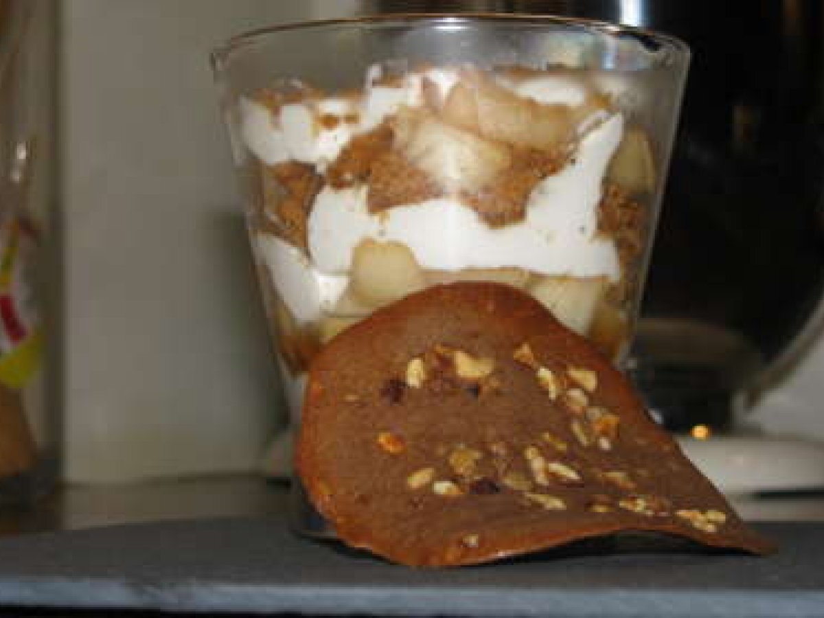 Verrines sucrées poires, spéculoos, mascarpone PrécédentSuivant Dessertmoyen15 min Envoyer cette recette à un ami Imprimer cette page Poser une question à l'auteur Publier votre photo de cette recette Ingrédients 2 2 poires 100g de mascarpone 100g de yaourt à la vanille 1 sachet de sucre vanillé 30g de sucre blanc + 10g de sucre à la cannelle 8 biscuits speculoos