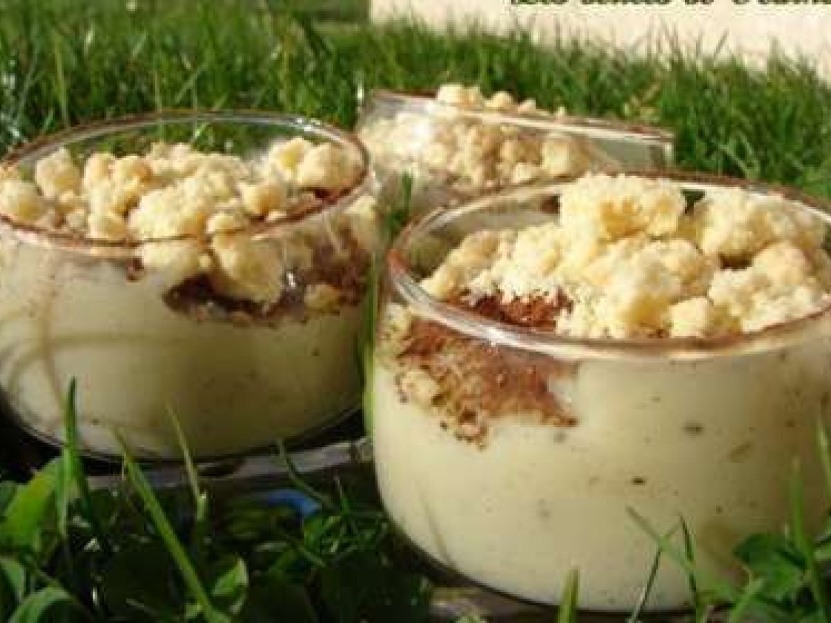 Verrines vanille chocolat Dessertfacile10 min483 Kcal Envoyer cette recette à un ami Imprimer cette page Poser une question à l'auteur Publier votre photo de cette recette Ingrédients 6 Pour la crème pâtissière : 2 jaunes d'oeufs 1/2 l de lait 125 g de sucre 60 g de farine 1 gousse de vanille Du cacao amer De la pâte à crumble : 80 g de beurre salé 50 g de sucre 80 g de poudre d'amandes ou de noix ou de noisettes 120 g de farine Coût estimé: 3.66Euros€ (0.61€/part)