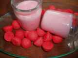 Ingrédients: 1 briquette de 20 cl de lait Gloria très froid 4 cuillères à soupe de sucre en poudre le jus d'1/2 citron 250 g de fraises très parfumées, style...