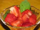 Ingrédients: glace vanille chantilly 250g de fraises 50g de sucre fin jus d'1/2 citron quelques feuilles de basilic 2cs de liqueur de basilic meringue fraise...