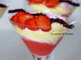 Ingrédients: Pour la génoise : 1 oeuf 30 g de sucre 30 g de farine Pour le bavarois : 125 g de fraises lavées et équeutées 1/ 4 de jus de citron 1,5 feuille de...