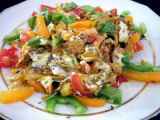 Ingrédients: 1 grosse boîte de haricots verts 250 g de filets de haddock place du marché 4 tomates 1 poivron-vinaigrette au vinaigre balsamique basilic
