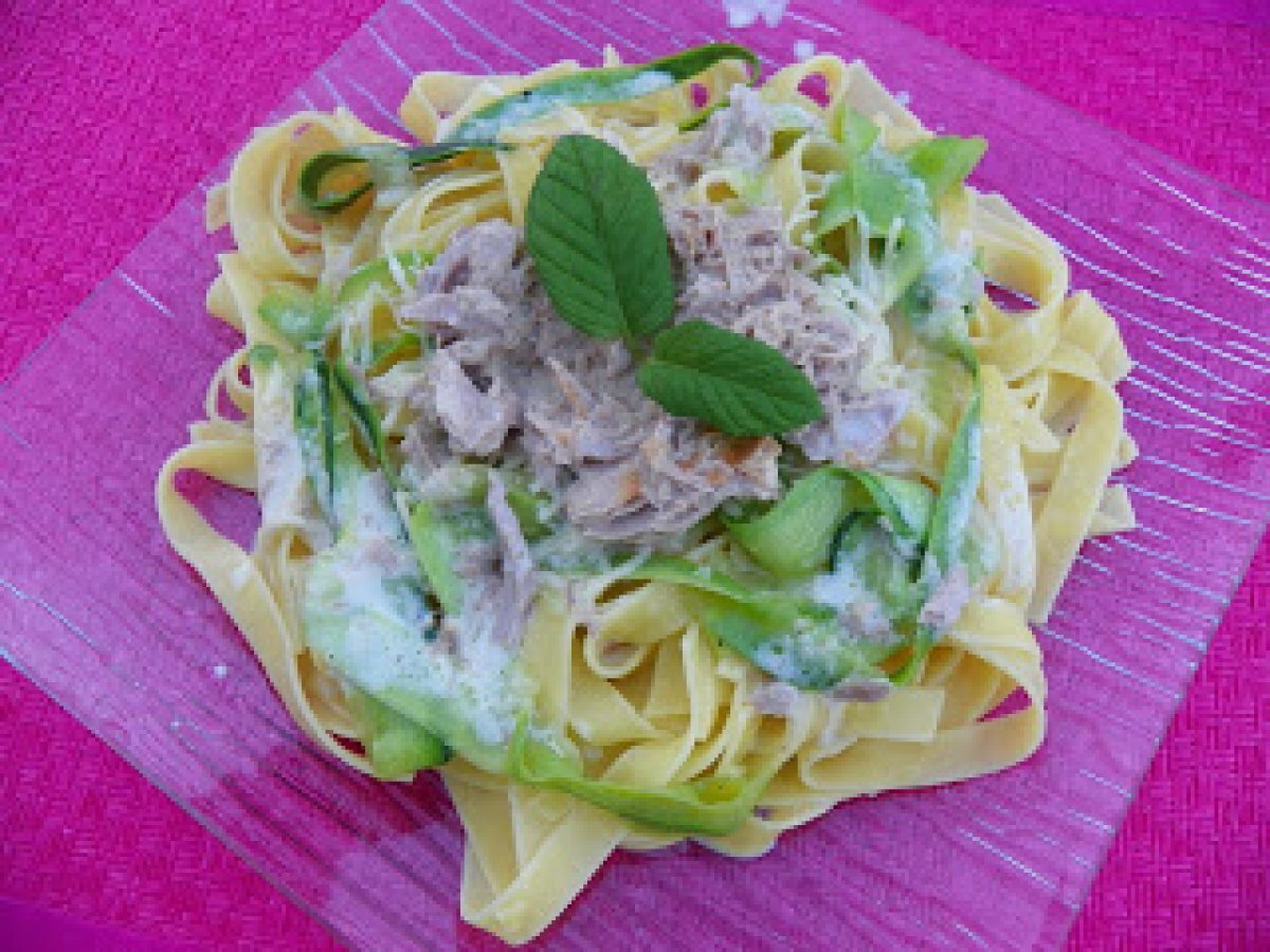 Assiette fraicheur, tagliatelle, tagliatelle de courgette, sauce parmesan et thon Entréefacile17 min Envoyer cette recette à un ami Imprimer cette page Poser une question à l'auteur Publier votre photo de cette recette Ingrédients 4 500 g de tagliatelle 2 courgettes fleur de sel, poivre 5 baies 1 briquette de crème fraîche semi liquide 1 grosse boite de thon émietté (environ 280 g) 1 sachet de parmesan (environ 70 g) un peu d'huile d'olive menthe fraîche (facultatif) un peu de gruyère pour les gourmands