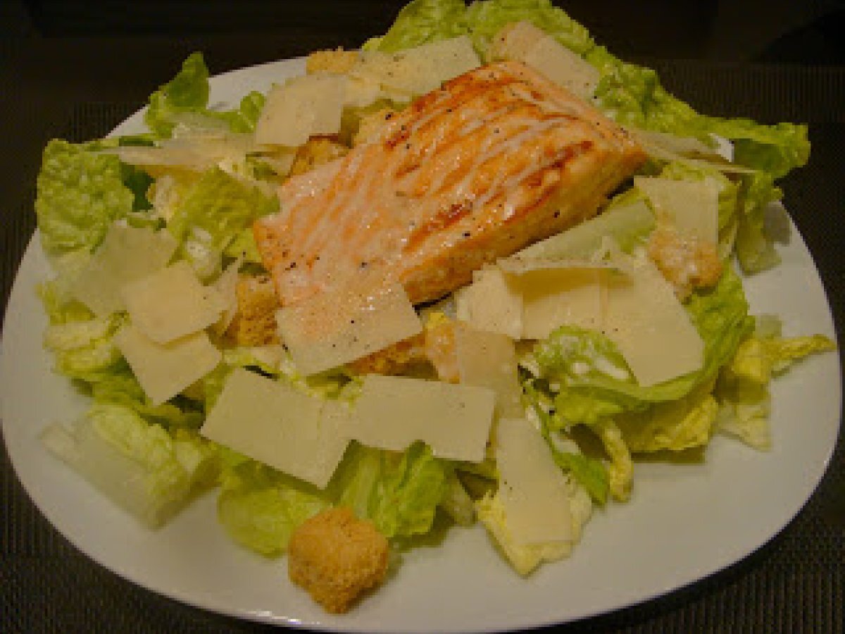 Au menu ce soir: salade césar allégée au saumon Entréefacile8 min970 Kcal Envoyer cette recette à un ami Imprimer cette page Poser une question à l'auteur Publier votre photo de cette recette Ingrédients 2 2 filets de saumon 100 g de Croûtons 1 laitue romaine 150 g de fromage Parmesan râpé Pour la vinaigrette César: 1 gousse d'ail écrasée Jus d'un citron 1 cuillères à soupe de moutarde à l'ancienne 125 ml de crème fraîche allégée Sel poivre