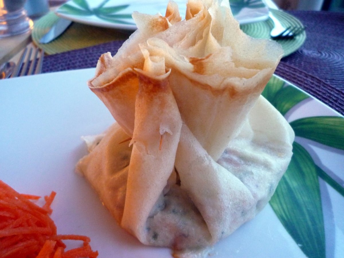 Aumonière au saumon fumé et herbes fraîches Entréefacile30 min314 Kcal Envoyer cette recette à un ami Imprimer cette page Poser une question à l'auteur Publier votre photo de cette recette Ingrédients 4 8 feuilles de brick 2 tranches de saumon fumé 1 boule de mozzarella 1 bouquet de ciboulette fraîche 8 feuilles de basilic frais 2 cuillères à soupe de crème fraîche épaisse sel poivre 10 g de beurre fondu Coût estimé: 5.94Euros€ (1.49€/part)