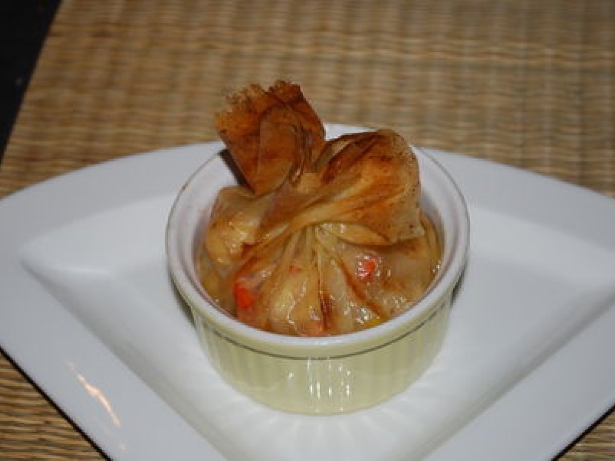 Aumônières de noix de st jacques et crevettes Entréefacile22 min Envoyer cette recette à un ami Imprimer cette page Poser une question à l'auteur Publier votre photo de cette recette Ingrédients 4 Feuilles de brick Noix de St Jacques (3 à 4 par personne avec corail) Crevettes Cabillaud (du congelé fera très bien l'affaire!) 50 g de farine 30 g de beurre + beurre fondu pour les feuilles de brick 15 cl de vin blanc sec sel poivre 1 oignon 1 bouquet garni (thym et laurier)