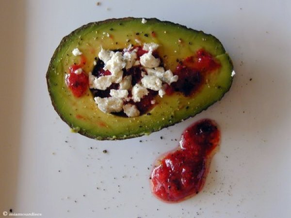 Avocat au chèvre, sauce framboise