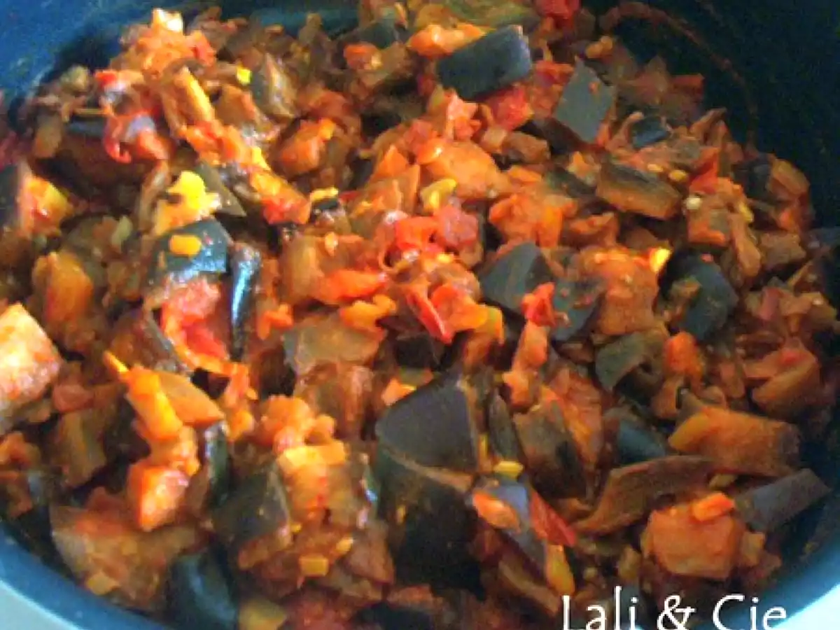 - Quand la tomate est cuite, verser les aubergines, bien mélanger et semer de coriandre.
