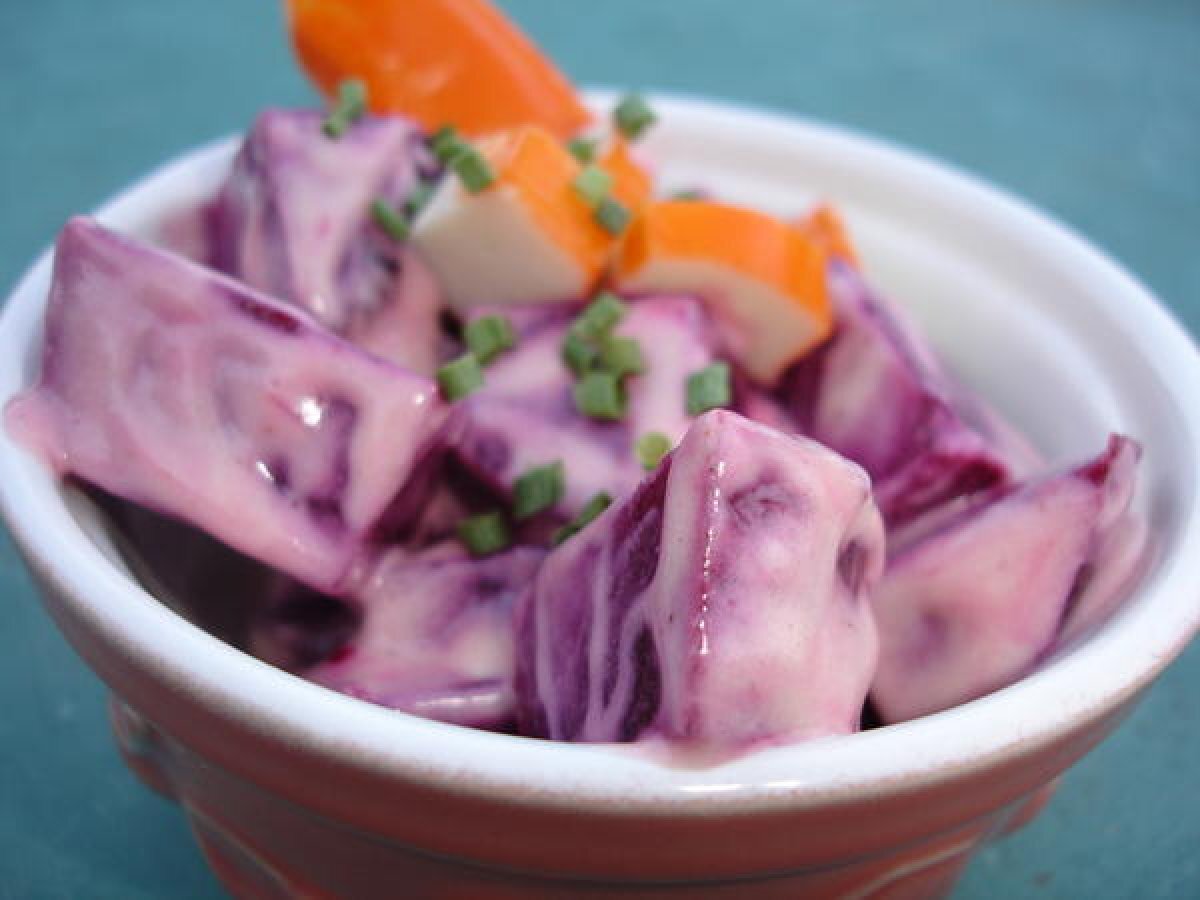 Voici une petite salade toute simple à base de betterave, surimi et ciboulette, c'est très frais et parfait pour la ligne!