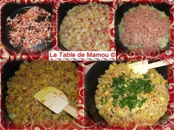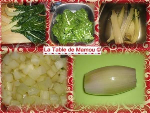 Bettes farcies votez maintenant PrécédentSuivant Entréefacile1 h 5 m Envoyer cette recette à un ami Imprimer cette page Poser une question à l'auteur Publier votre photo de cette recette Ingrédients 4 6 tiges de bettes, (ou blettes, les deux se disent) 100 g de lardons fins fumés 1 grosse échalote 400 g de veau haché 1.5 g de raz el hanout (1 cuillère à thé) Sel, poivre du moulin, ail en poudre Persil plat, 3 belles branches 150 g de ricotta 5 tomates beurre salé 4 tranches de gouda (ou autre fromage au choix)