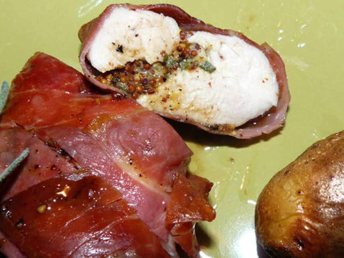 Blancs de poulet au beurre de sauge PrécédentSuivant Entréefacile35 min557 Kcal Envoyer cette recette à un ami Imprimer cette page Poser une question à l'auteur Publier votre photo de cette recette Ingrédients 4 Beurre de sauge 12 feuilles de sauge fraiche ciselées 100g de beurre mou 4 cuillère à café de moutarde à l'ancienne Sel poivre 4 blancs de poulet 8 tranches fines de jambon cru italien 1 cuillère à café d'huile d'olive Sauce 3 verres de vin blanc sec 1 gousse d'ail 1 feuille de sauge Sel poivre Coût estimé: 19.3Euros€ (4.82€/part)