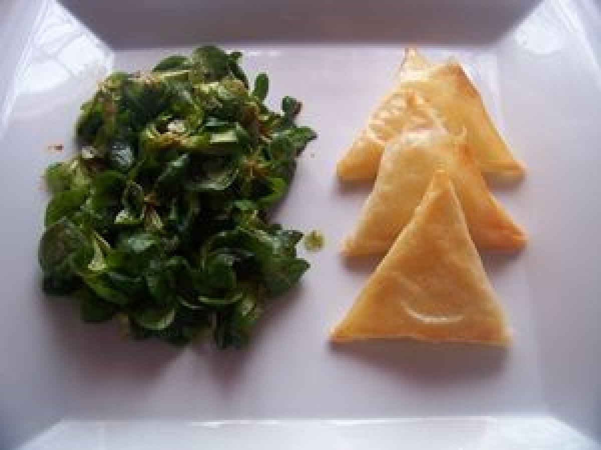 Bricks au maroilles et salade a la chicoré!!!et pliage des bricks en triangle!!!
