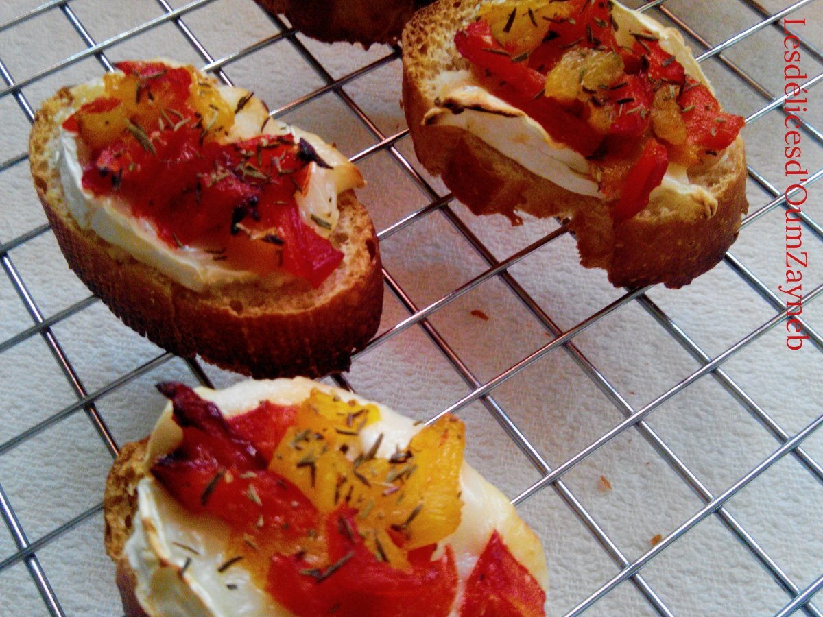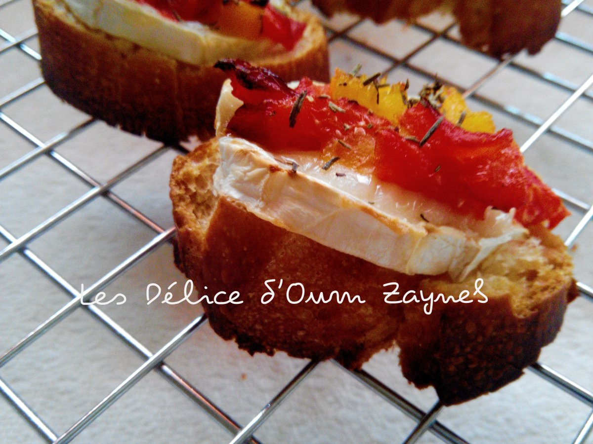 Bruschetta chèvre et poivrons PrécédentSuivant Entréefacile15 min319 Kcal Envoyer cette recette à un ami Imprimer cette page Poser une question à l'auteur Publier votre photo de cette recette Bruschetta chèvre et poivrons Ingrédients 4 1 Baguette de pain 1 Bûche de chèvre 1 Poivron rouge 1 Poivron jaune Thym Coût estimé: 4.65Euros€ (1.16€/part)