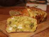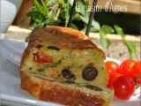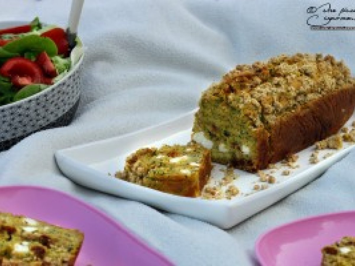 Cake à la courgette, féta, tomates confites et pignons de pin