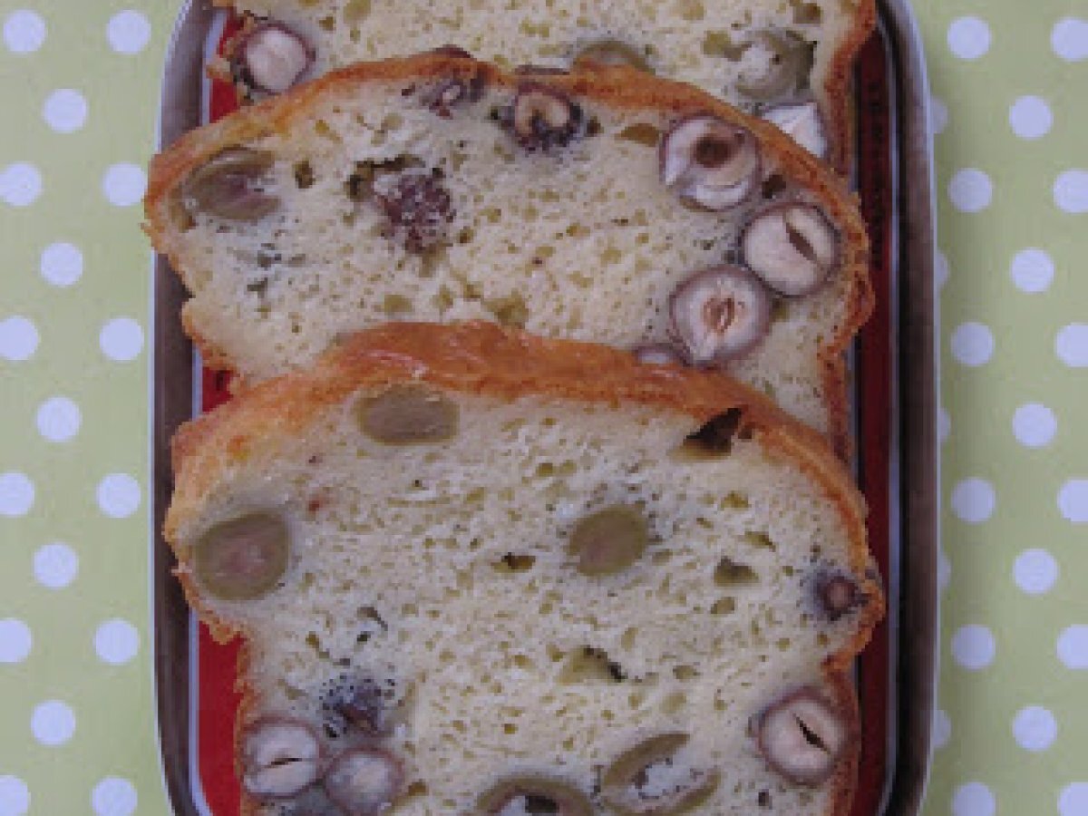 Cake aux olives et aux noisettes PrécédentSuivant Entréemoyen1 heure834 Kcal Envoyer cette recette à un ami Imprimer cette page Poser une question à l'auteur Publier votre photo de cette recette Ingrédients 4 150 g de farine 2 cuillères à café de levure chimique 4 oeufs 5 cuillères à soupe d'huile d'olive 15 cl de lait 150 g d'olives vertes dénoyautées 150 g de noisettes 150 g d'emmental râpé Sel Poivre Coût estimé: 7.48Euros€ (1.87€/part)