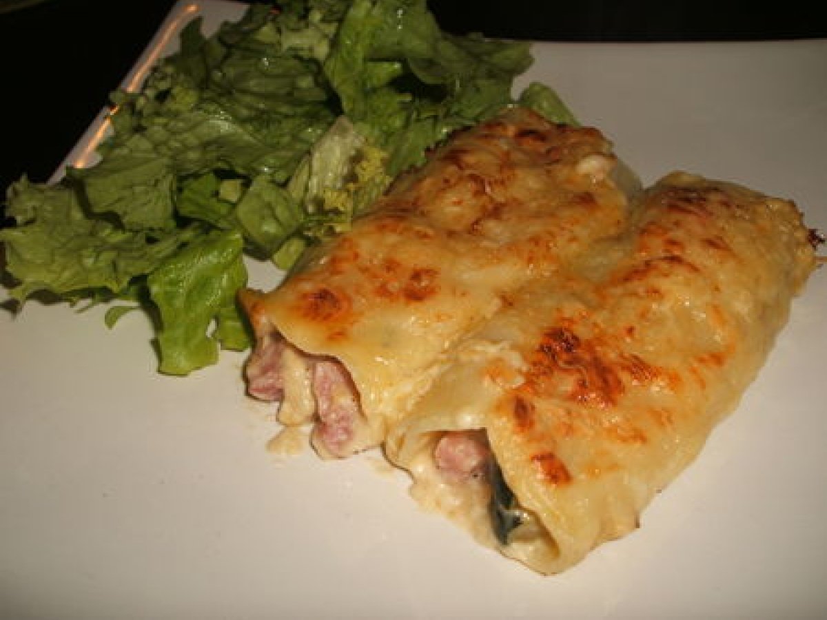 Cannelloni aux courgettes, dés de jambon et béchamel Entréefacile55 min637 Kcal Envoyer cette recette à un ami Imprimer cette page Poser une question à l'auteur Publier votre photo de cette recette Ingrédients 2 8 feuilles de lasagnes 1 tranche épaisse de jambon (200 g)coupée en petits dés 2 courgettes coupées en dés 50 cl de lait chaud 30 g de beurre 2 cuillères à soupe de farine 1 poignée de gruyère râpé 2 cuillères à soupe de crème sel poivre Coût estimé: 3.7Euros€ (1.85€/part)