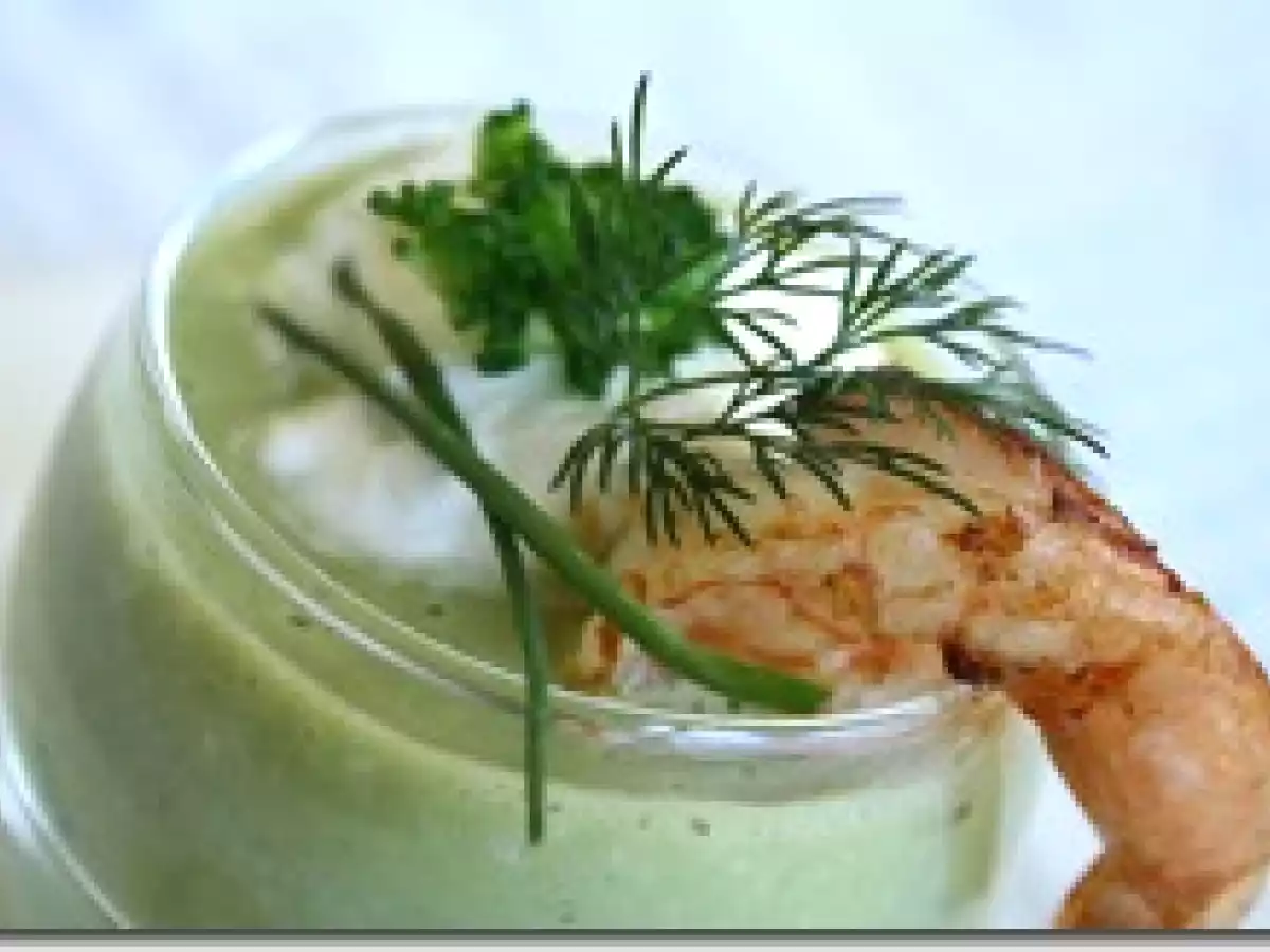 Capuccino de brocoli aux gambas PrécédentSuivant Entréefacile45 min335 Kcal Envoyer cette recette à un ami Imprimer cette page Poser une question à l'auteur Publier votre photo de cette recette Ingrédients 4 1 oignon cébette 1 branche de céleri 1 pied de brocolis 75 cl de bouillon de volaille 25 cl de crème liquide entière 16 gambas crues décongelées huile d'olive sel poivre herbes fraiches