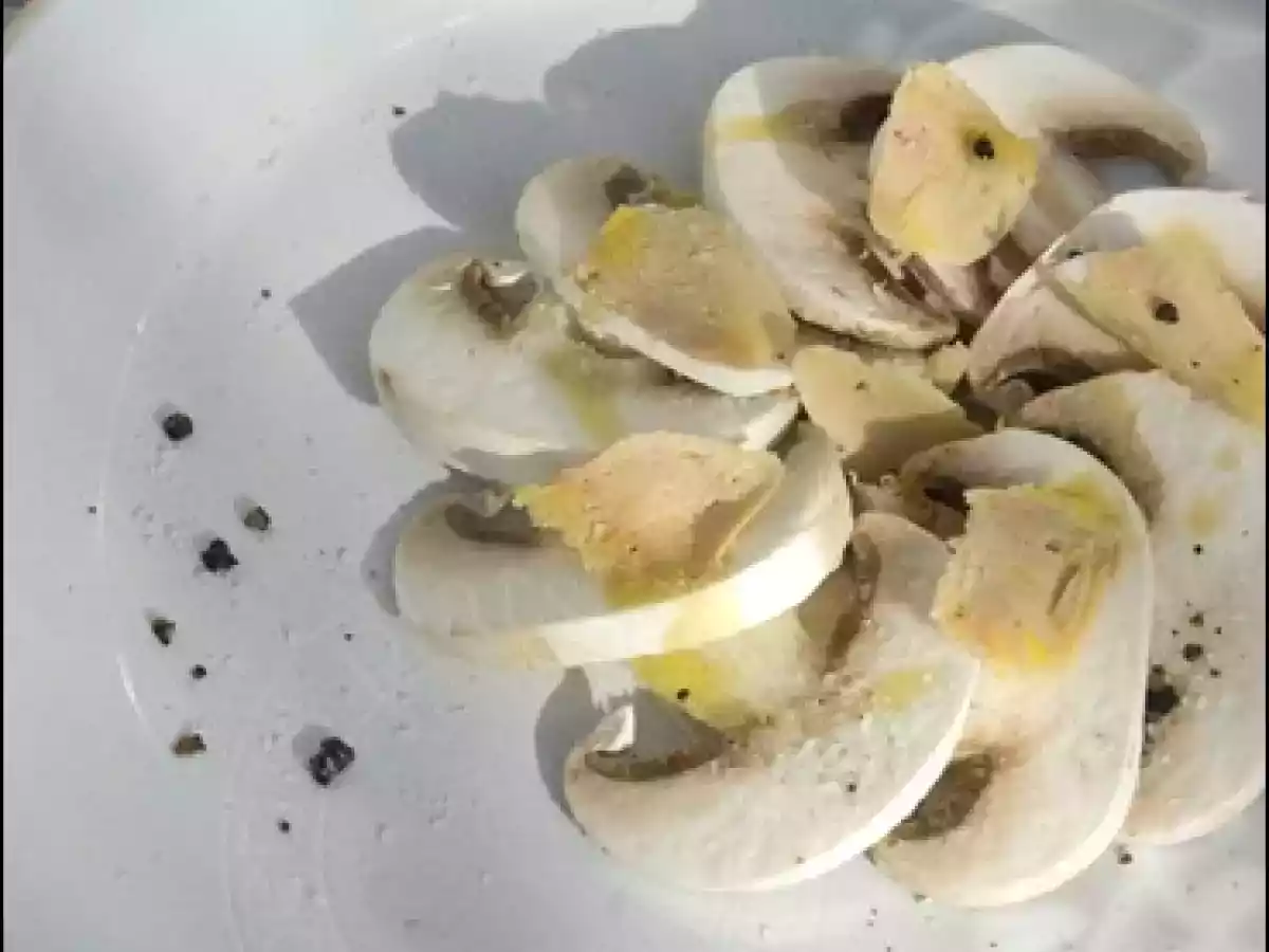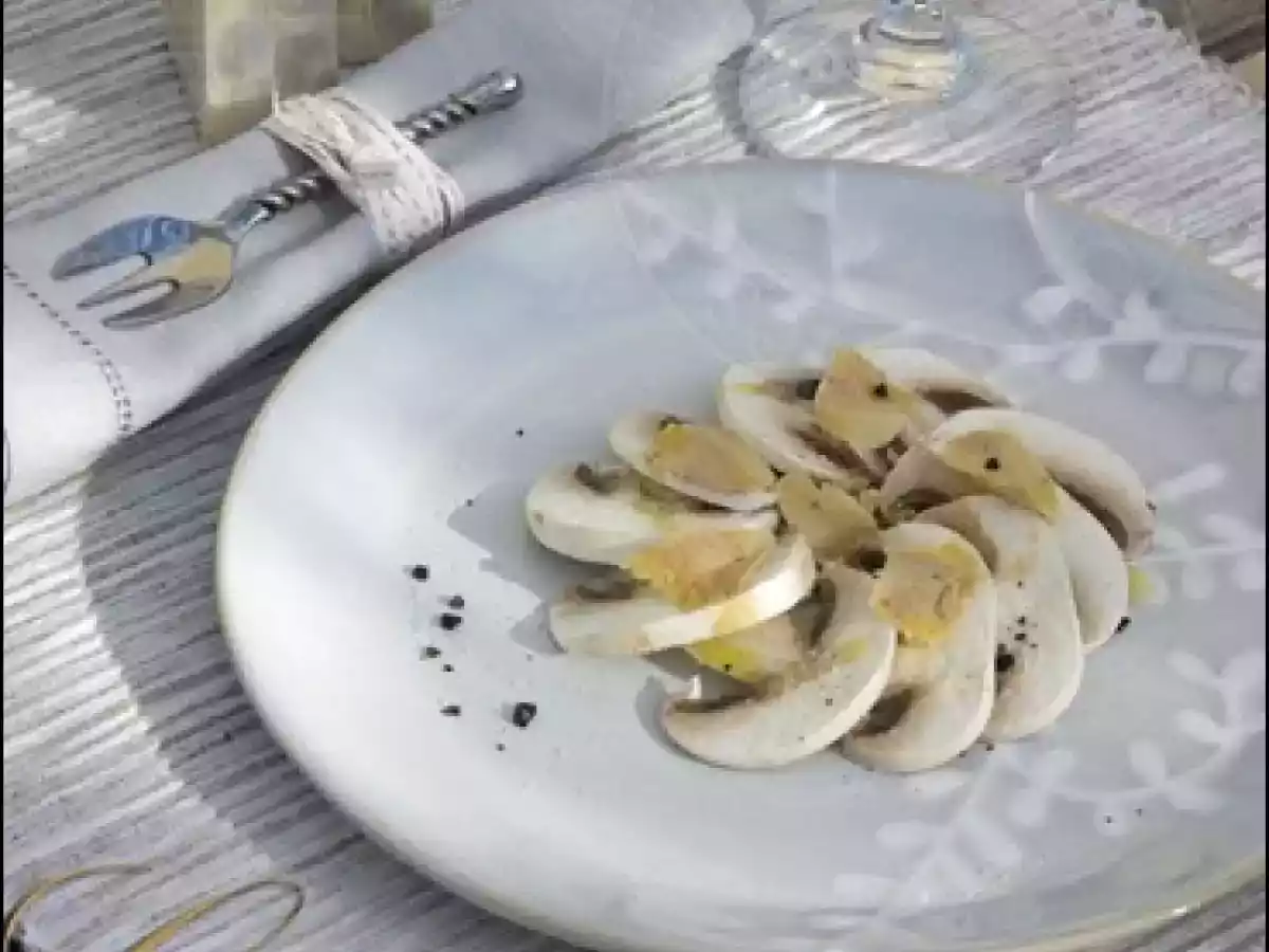 Carpaccio de champignons, lamelles de foie gras et truffe PrécédentSuivant Entréefacile15 min78 Kcal Envoyer cette recette à un ami Imprimer cette page Poser une question à l'auteur Publier votre photo de cette recette Ingrédients 4 environ 300g de champignons de paris 20g de foie gras 1 petite truffe ou du sel à la truffe huile d'olive fleur de sel Coût estimé: 2.61Euros€ (0.65€/part)