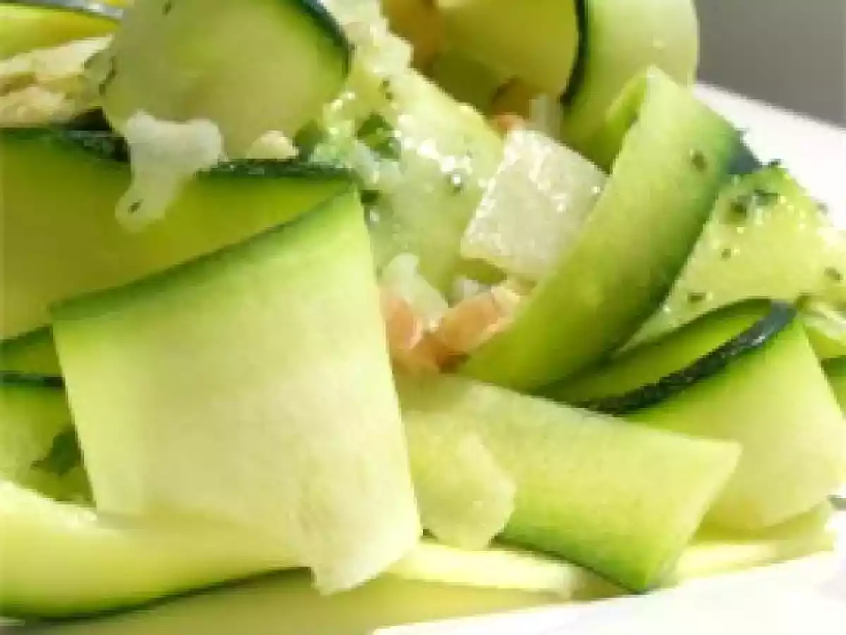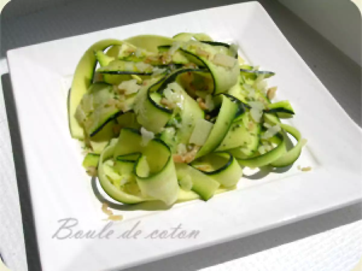 Carpaccio de courgette PrécédentSuivant Entréefacile15 min Envoyer cette recette à un ami Imprimer cette page Poser une question à l'auteur Publier votre photo de cette recette Une petite entrée chic, légère et simplissime qui révolutionne la courgette… Ingrédients 4 2 petites courgettes vertes 8 cuillères à soupe d’huile d’olive 1 citron jaune du basilic frais 1 poignée de noix (environ 10) hachées 1 poignée de copeaux de parmesan (environ 30)