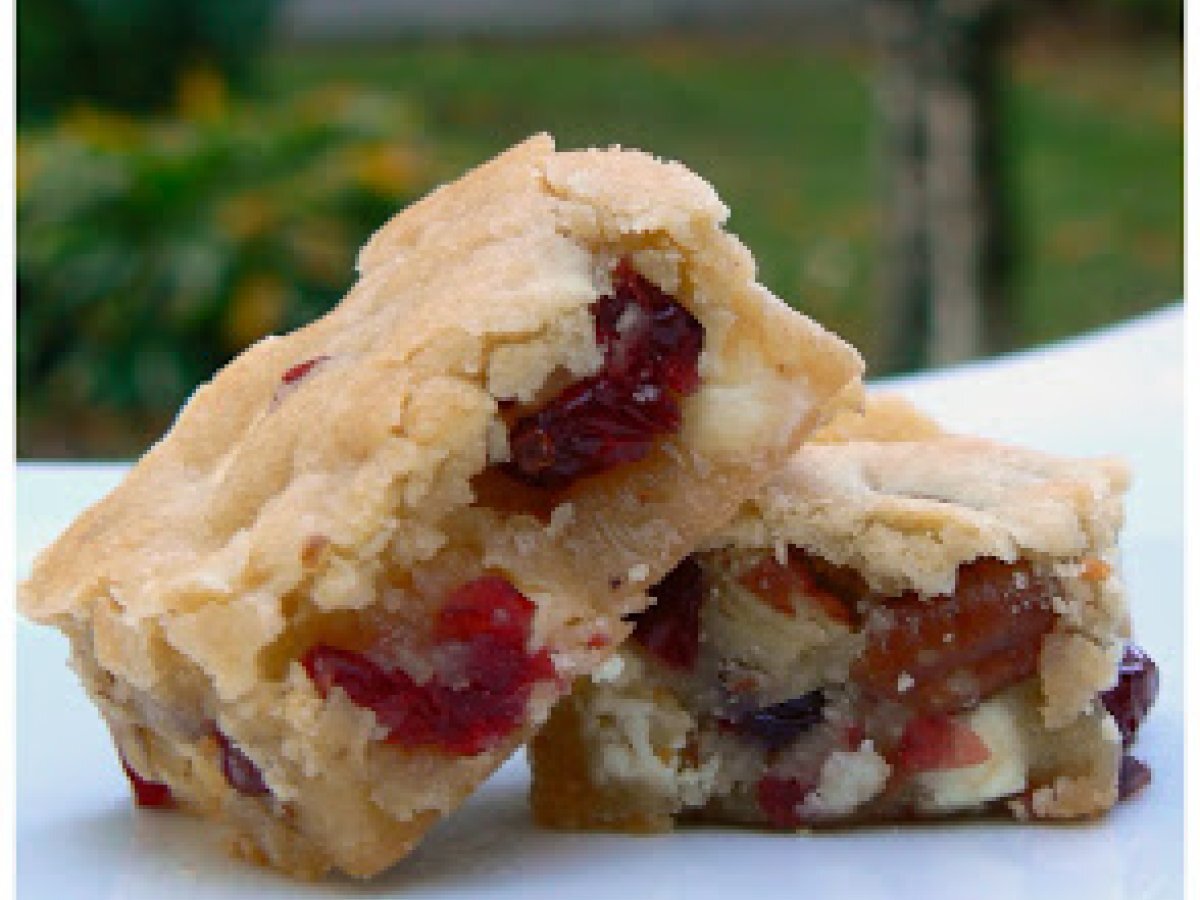 Carrés délicieux aux canneberges, pacanes et chocolat blanc Entréemoyen45 min Envoyer cette recette à un ami Imprimer cette page Poser une question à l'auteur Publier votre photo de cette recette Ingrédients 4 1/2 tasse de sucre 1/3 tasse de margarine ou beurre ramolli 1/4 tasse de cassonade 1 oeuf large 1 cuillère à thé de vanille 1 tasse de farine 1/2 cuillère à thé de poudre à pâte(levure chimique) 1 pincée de sel 1/2 tasse de canneberges séchées 1/2 tasse de brisures de chocolat blanc 1/2 tasse de pacanes hachées grossièrement