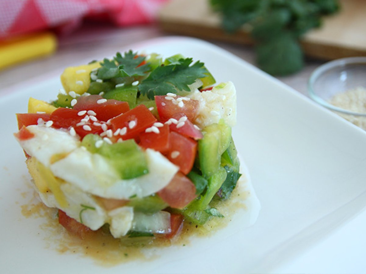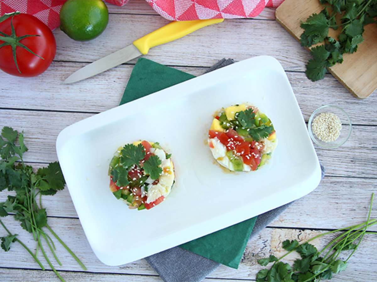 Faites voyager vos papilles jusqu'en Amérique du sud grâce à notre recette de ceviche ! Sans cuisson, reproduisez cette préparation haute en couleur et en saveurs ! Du cabillaud associé à des dès de tomates, de poivrons verts et de mangue afin d'ajouter un peu de soleil à votre cuisine.