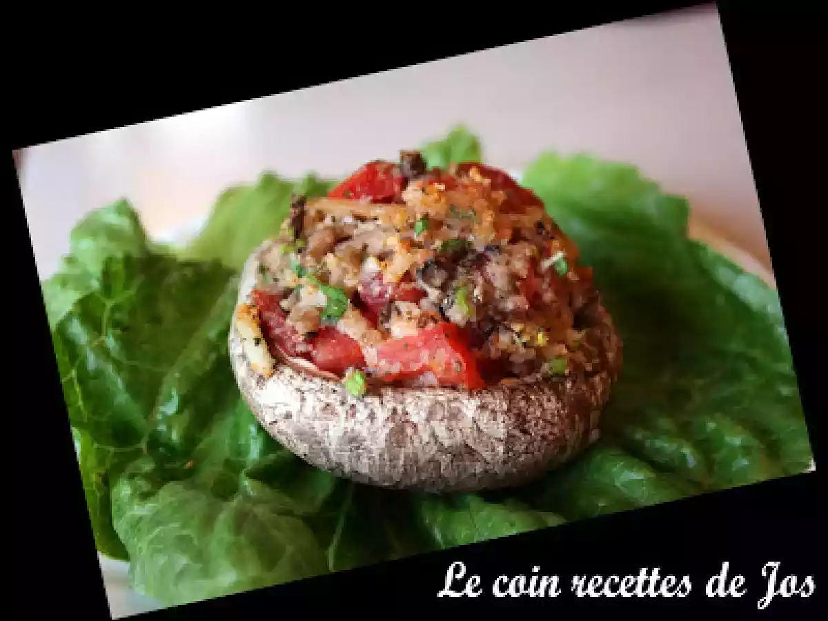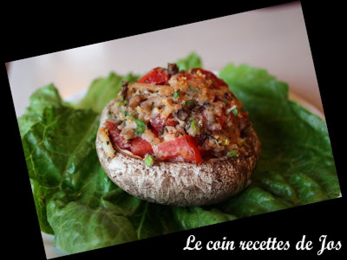 Champignons portobello farcies aux tomates Entréefacile25 min111 Kcal Envoyer cette recette à un ami Imprimer cette page Poser une question à l'auteur Publier votre photo de cette recette Ingrédients 4 4 à 5 champignons portobello 1/4 tasse de chapelure à l'italienne 1/4 tasse de fromage mozzarella 1 grosse tomate, coupé en petits dés 1/2 cuillère à thé de basilic 1 oignon vert sel et poivre au goût Coût estimé: 1.21Euros€ (0.3€/part)