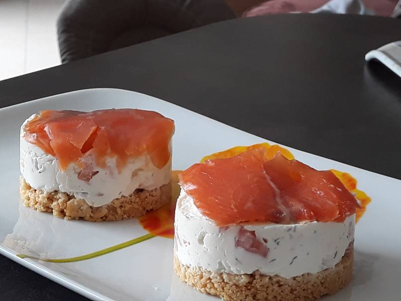 Les crakers plus le saumon...cette recette est extrêmement salée. Je conseille de trouver des crackers moins salés que les Tuc et de ne surtout pas ajouter de sel dans la crème. Sinon c'est une recette fraîche. J'ai ajouté un sachet agar-agar chauffé porté à ébullition dans un peu de lait pour plus de fermeté.