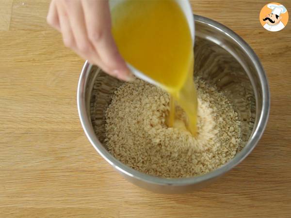 Écraser les biscuits apéritifs en poudre, et y ajouter le beurre fondu.