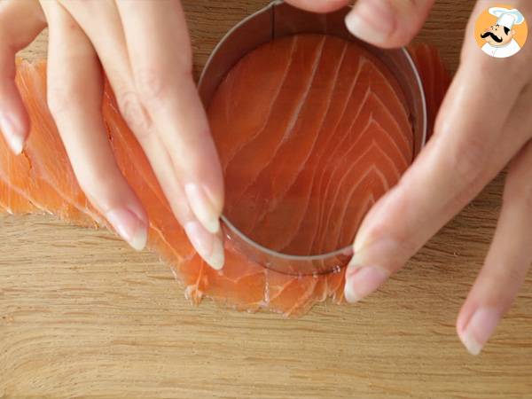 À l'aide d'un cercle, découper des morceaux dans les tranches de saumon fumé restantes.