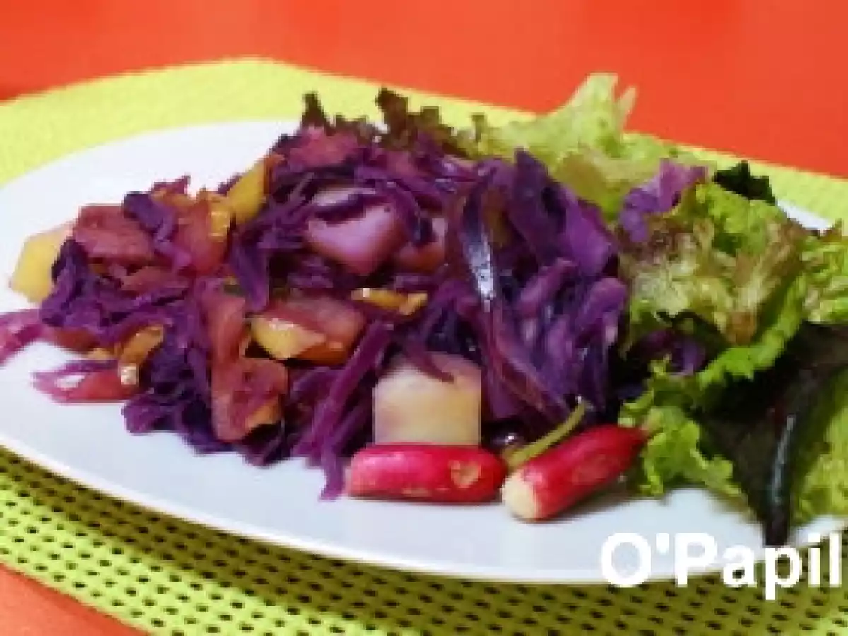 Chou rouge aux pommes et pommes de terre Entréefacile1 heure415 Kcal Envoyer cette recette à un ami Imprimer cette page Poser une question à l'auteur Publier votre photo de cette recette Ingrédients 4 une demie tête de chou rouge 4 pommes 4 pommes de terre 2 oignons 2 cuillères à soupe d'huile de tournesol 1 feuille de laurier 4 clous de girofle sel et poivre Coût estimé: 8.57Euros€ (2.14€/part)